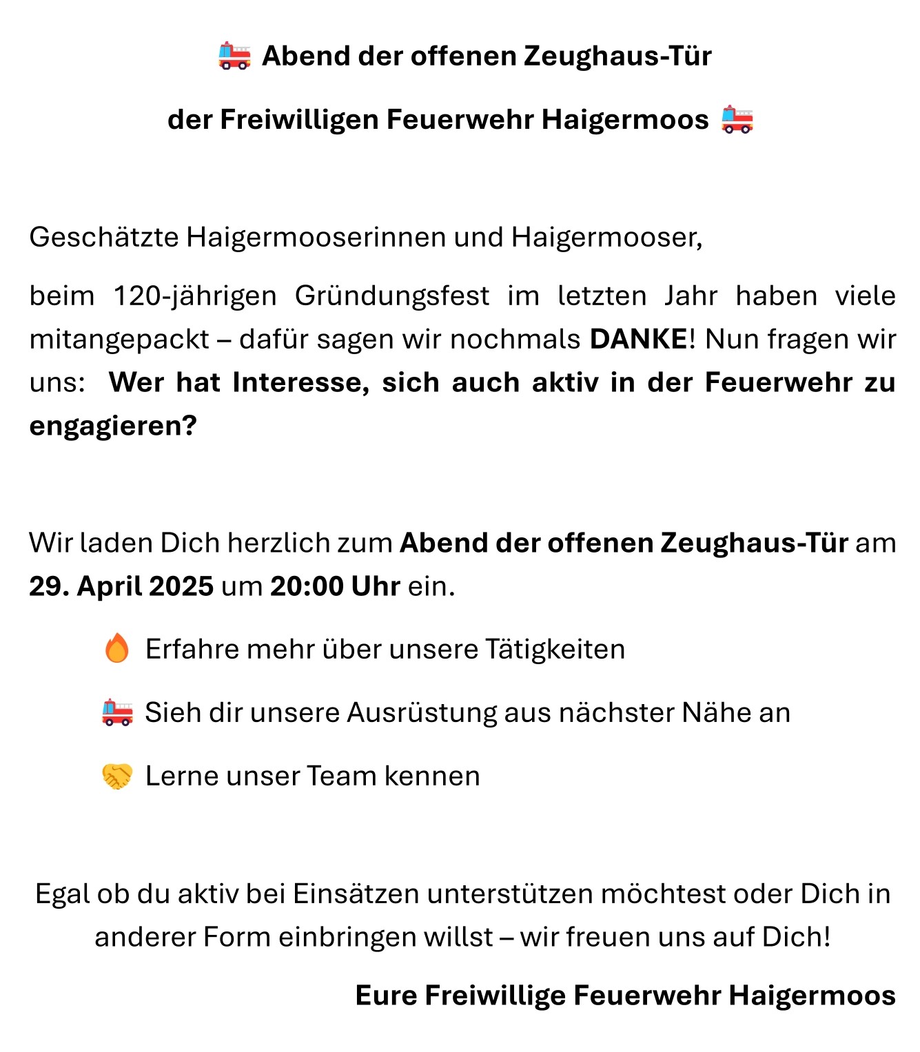 Mi 24.12.2025Aktion Friedenslicht Alljährlich wird von der Feuerwehrjugend die Aktion Friedenslicht durchgeführt. Wir danken allen Spendern für die großzügige Unterstützung. |