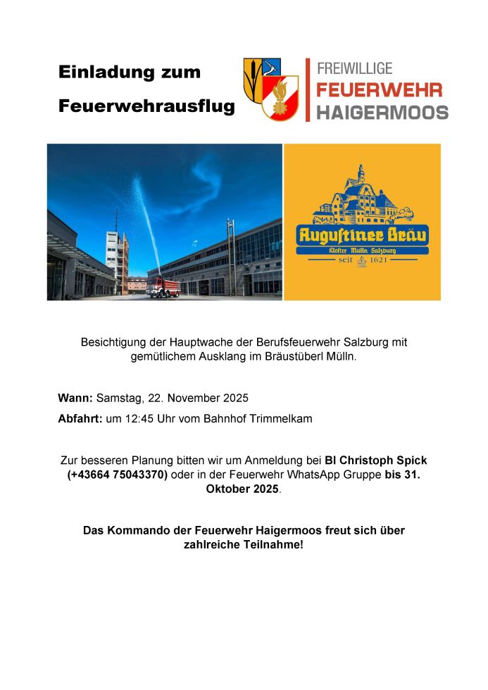 Feuerwehrausflug Berufsfeuerwehr Salzburg und Bräustüberl Mülln >mehr dazu < |