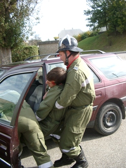 Weiters wurde die Bergung eines Verletzen mit Kopfverletzungen aus einem PKW geübt.