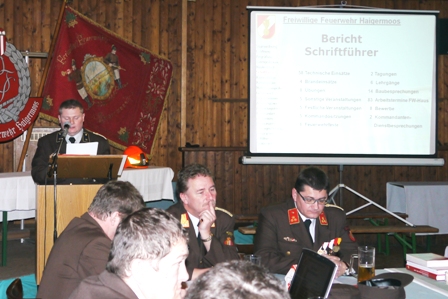 Wegen der Wahl des Kommandanten zum Bürgermeister der Gemeinde Haigermoos legt Kommandant Schwankner nach 22 Jahren im Kommando in seiner Dankesrede das Amt zurück und verspricht der FF Haigermoos nach wie vor zur Seite zu stehen. Walter Bamberger würdigt im Namen aller Anwesenden die vorbildliche Arbeit, die Kommandant Schwankner geleistet hat und dankt für den Einsatz und die Bereitschaft, den größten Teil der Freizeit in den Dienst der freiwilligen Hilfe gestellt zu haben.
