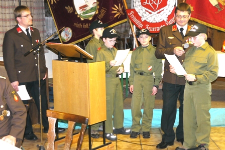 Nach erfolgreich abgeschlossener Jugendausbildung und erreichen des 16. Lebensjahres werden die Jungfeuerwehrmänner in den Aktivstand überstellt und angelobt. |