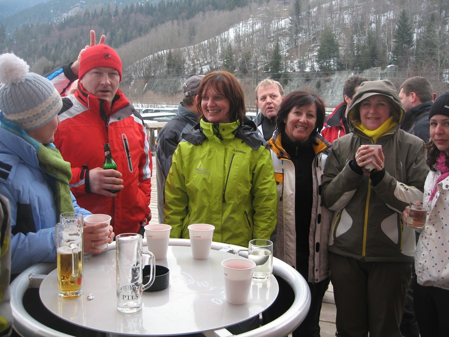 Vor der Heimfahrt Apres Schi in der Schirmbar