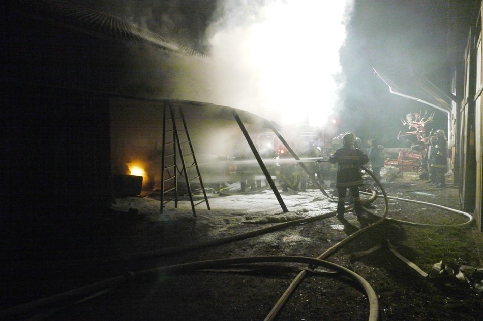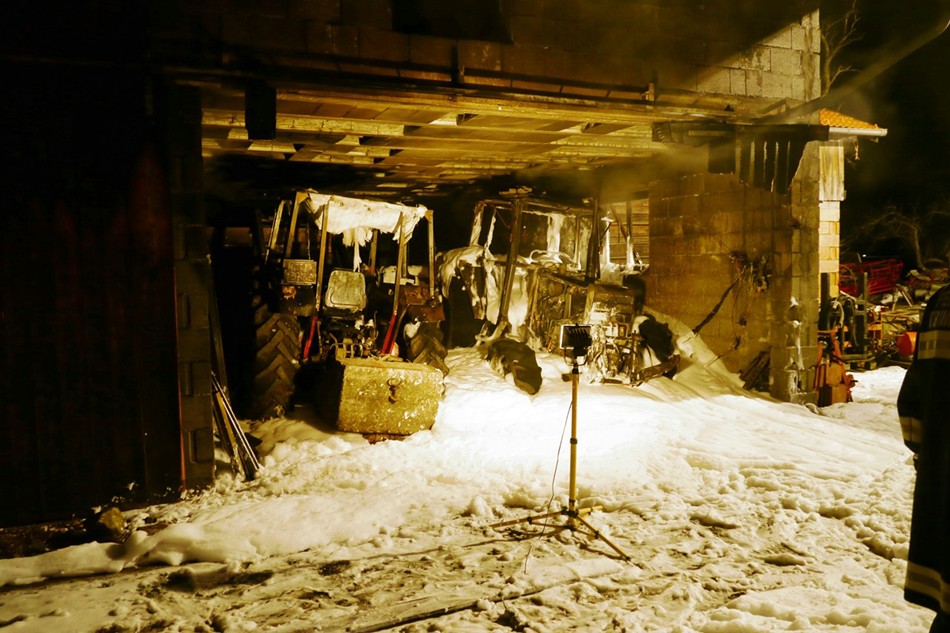 Am 26.3.2010 um 23:38 wurde die FF Haigermoos zur Brandbekämpfung an der Maschinenhütte im Anwesen Weyer 7 in Haigermoos alarmiert. Laut Brandursachenermittlung fing im Schuppen des Bauernhofes einer der Traktoren durch einen technischen Defekt im Motorraum Feuer. Der Brand griff dann auf den zweiten Traktor und das Gebäude über.