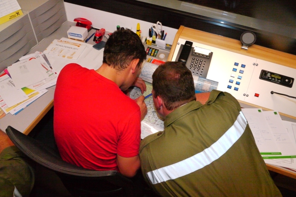 Während "Anton 1" die Löschwasserentnahmestellen abfuhr, wurde der Einsatz in der Zentrale "Florian 1" geleitet.