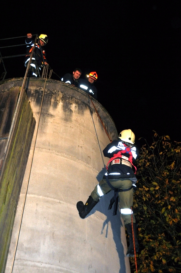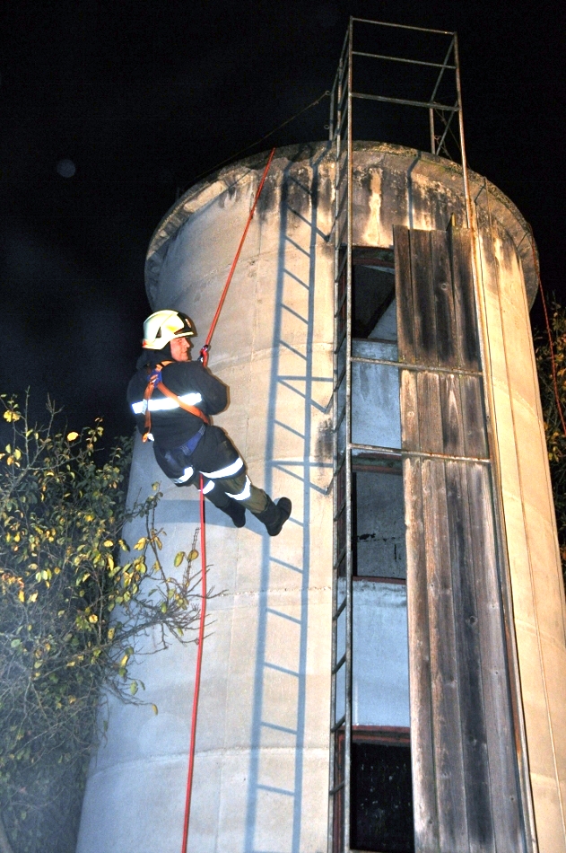 Den zweiten Teil der Übung bildete das Abseilen von einem Hochsilo beim Anwesen Lerberger, hierbei wurden wir tatkräftig von der FF Ernsting unter Kommandant HBI Moritz Uwe unterstützt.
