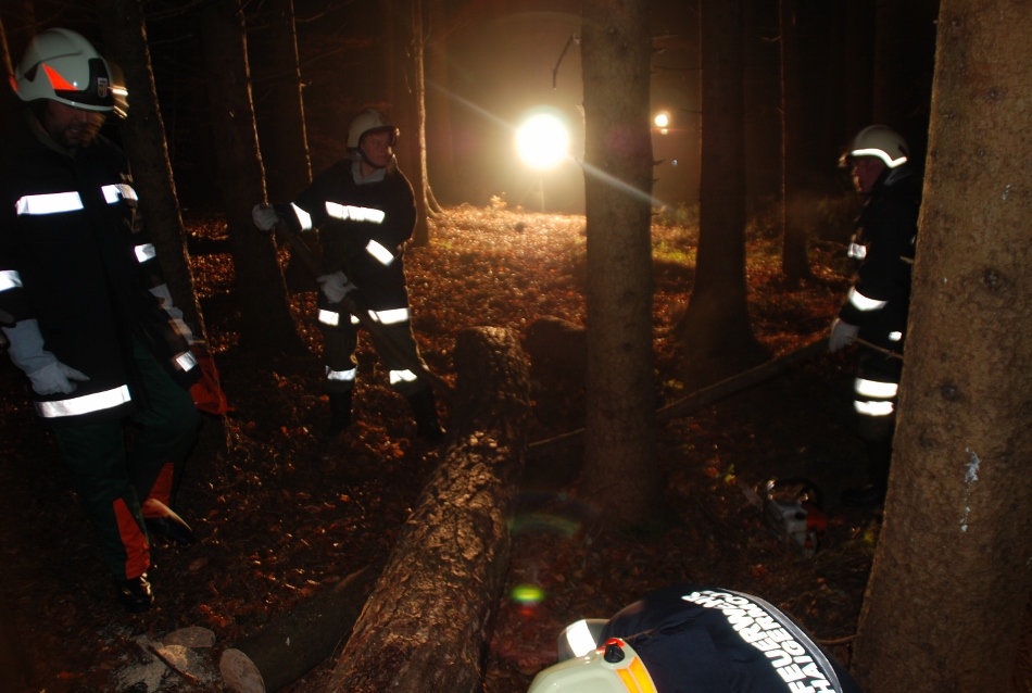 Am Samstag, 22.11.2011 um 19:30 Uhr wurde die Monatsübung mit einer Personenbergung abgehalten. Es wurde ein Forstunfall in einem Waldgebiet nahe dem Höllerer See mit eingeklemmter Person angenommen.