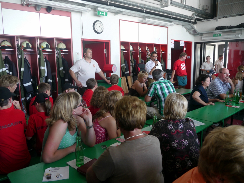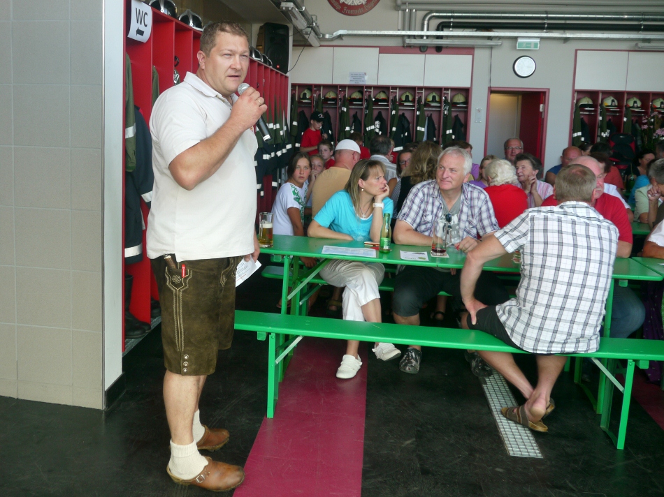 Erstmals wurde der FF Frühschoppen im neuen Feuerwehrhaus abgehalten. HBI Erich Stöllberger konnte bei strahlendem Sonnenschein und sehr sommerlichen Temperaturen viele Ehrengäste und zahlreiche Besucher begrüßen.