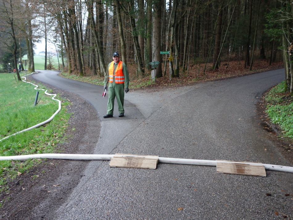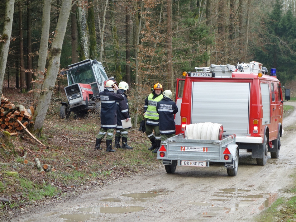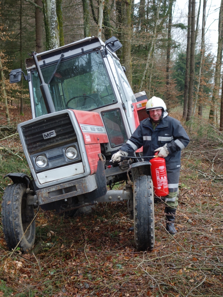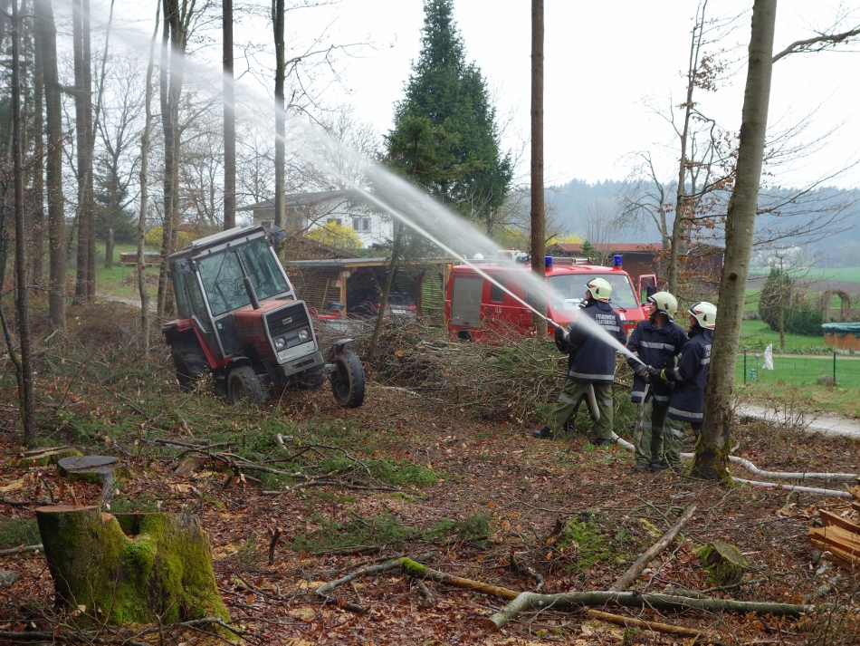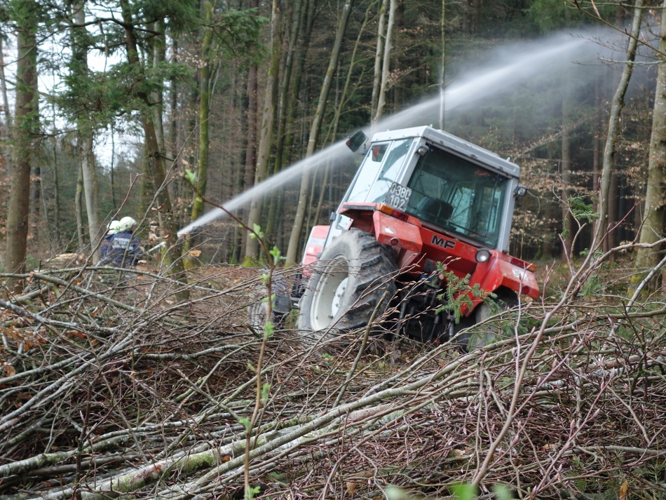 Übungsannahme war die Alarmierung nach einem umgestürzten Traktor in Hehermoos. Austretendes Öl musste gebunden werden.