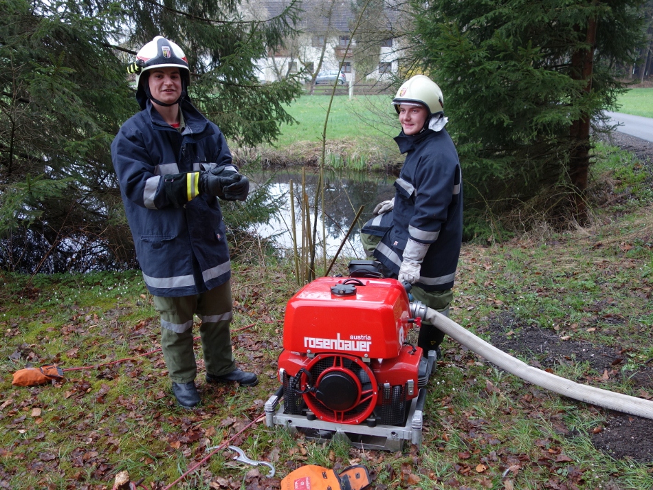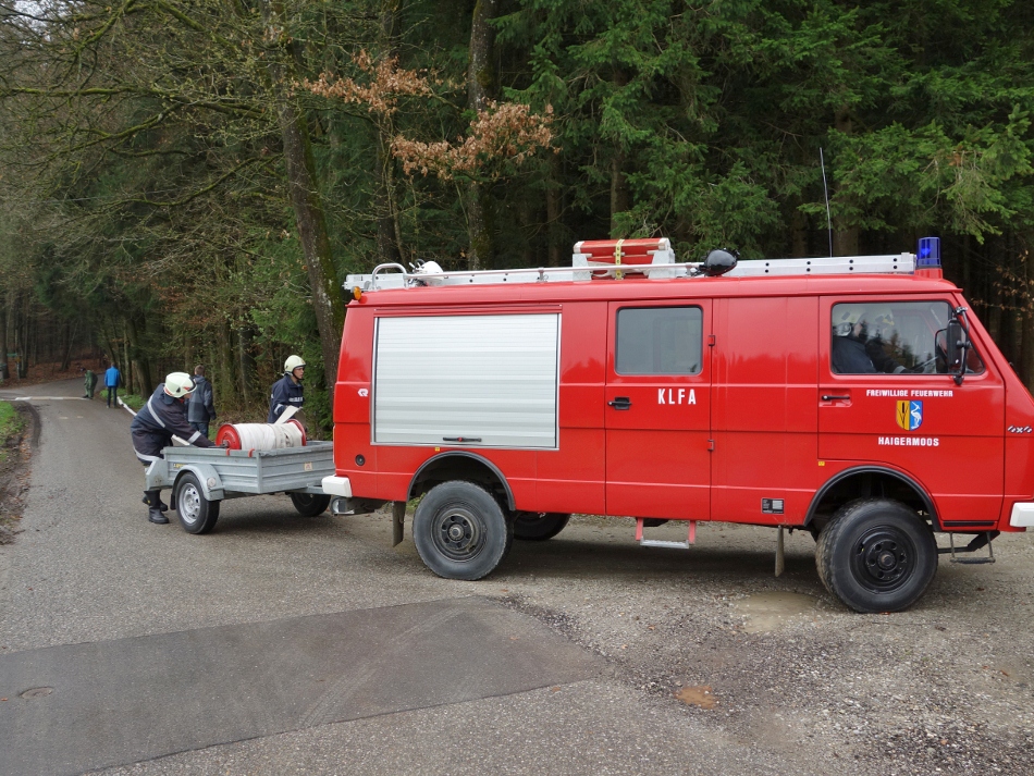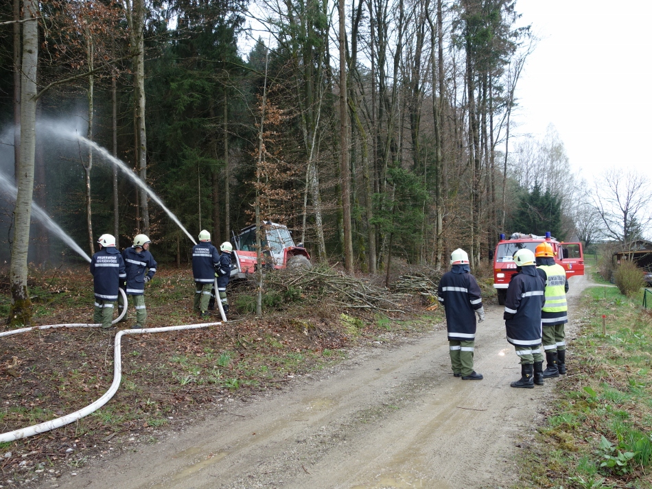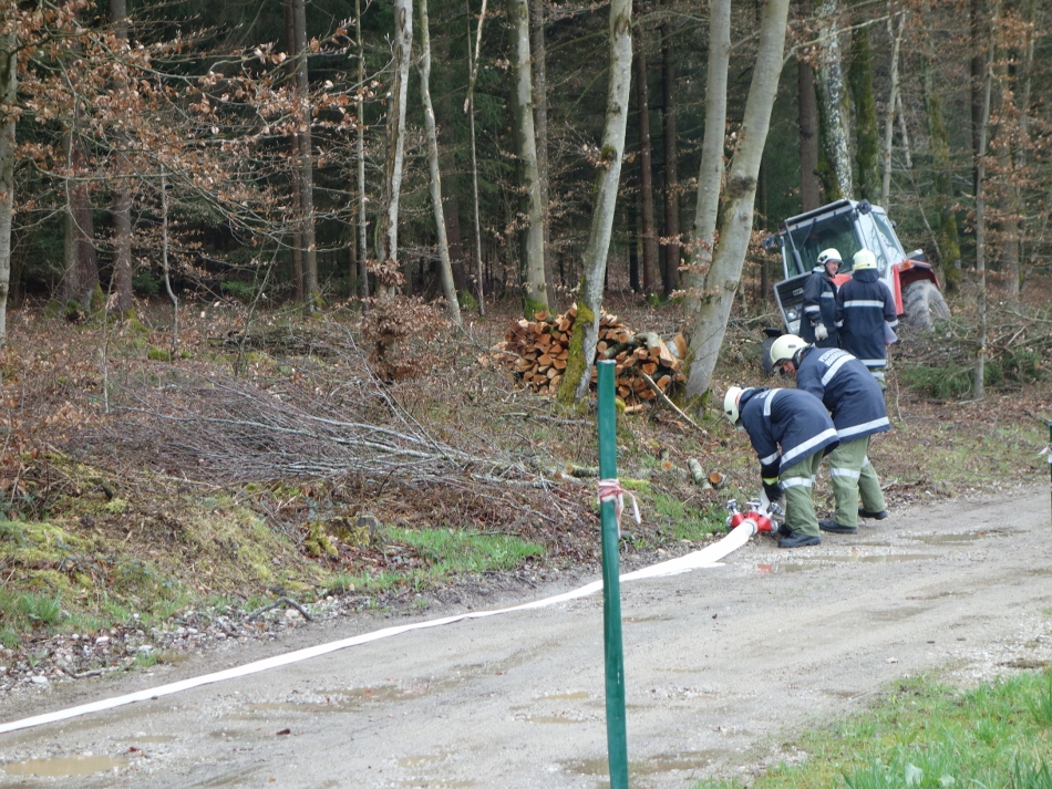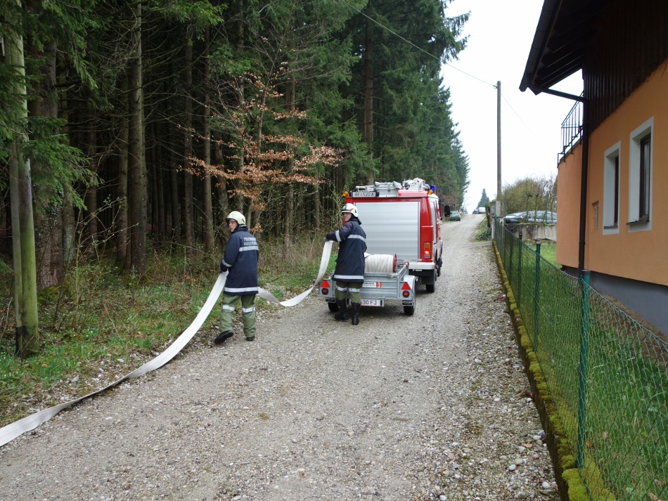 Der Löschangriff erfolgte vorerst mit einem Feuerlöscher. Anschließend wurde eine Zubringerleitung vom Schoberweiher gelegt (ca. 300 m). Der Löschangriff erfolgte mit 2 Rohren.