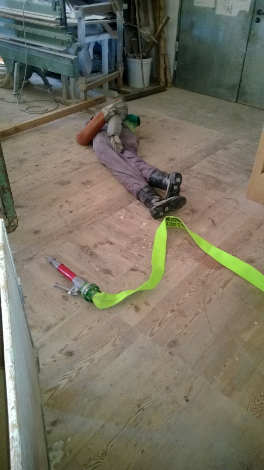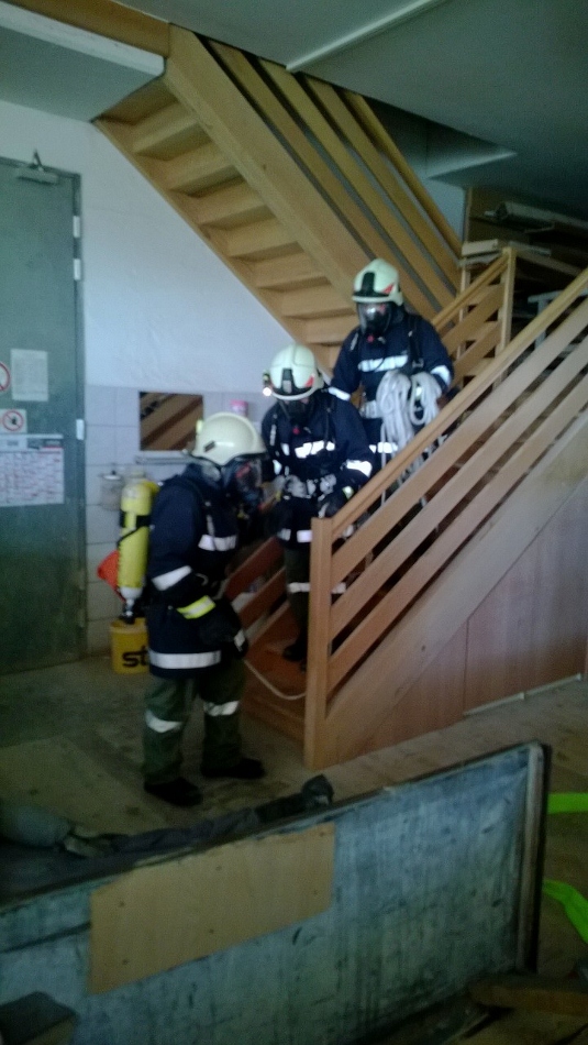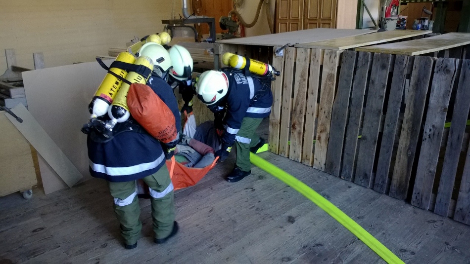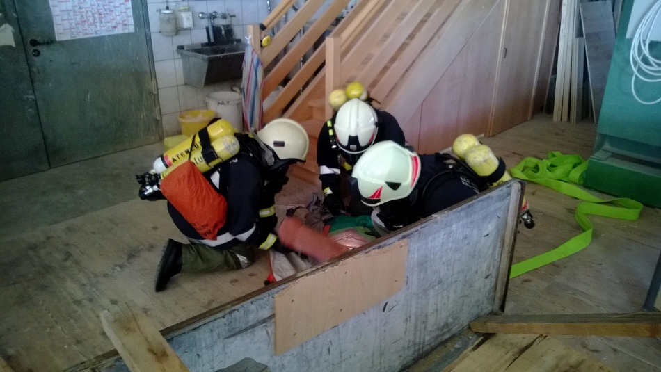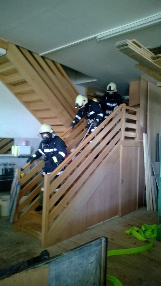 Übungsannahme war ein Tischlereibrand nach einer Staubexplosion, dabei war auch eine Personenrettung und die Bergung von gefährlichen Stoffen vorzunehmen. Die Übungsaufgaben wurden gut gemeistert. Es wurden verschiedene Knoten und Stiche zum Sichern, Herablassen und Befestigen von Gegenständen (Einsatzmaterialien) geübt.