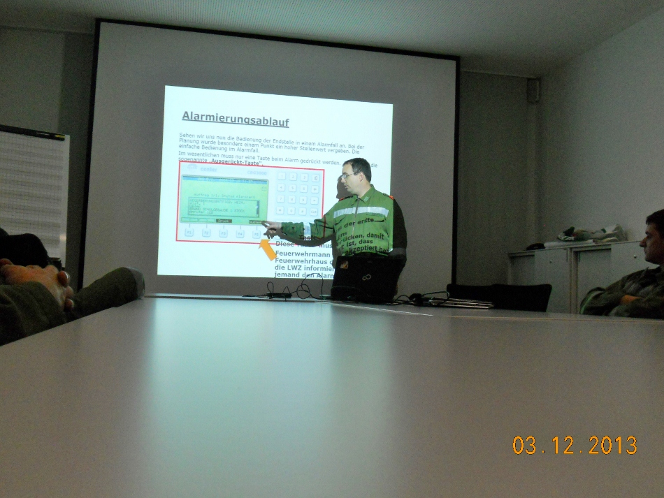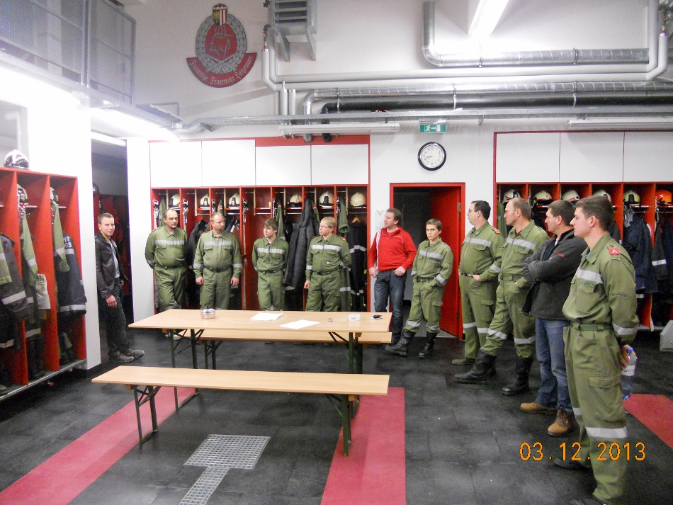 Am 3.12.2013 fanden im Feuerwehrhaus zwei Übungen zum Thema Warn-und Alamierungssystem (WAS) und zum Thema Personenrettung auf Eisflächen statt.