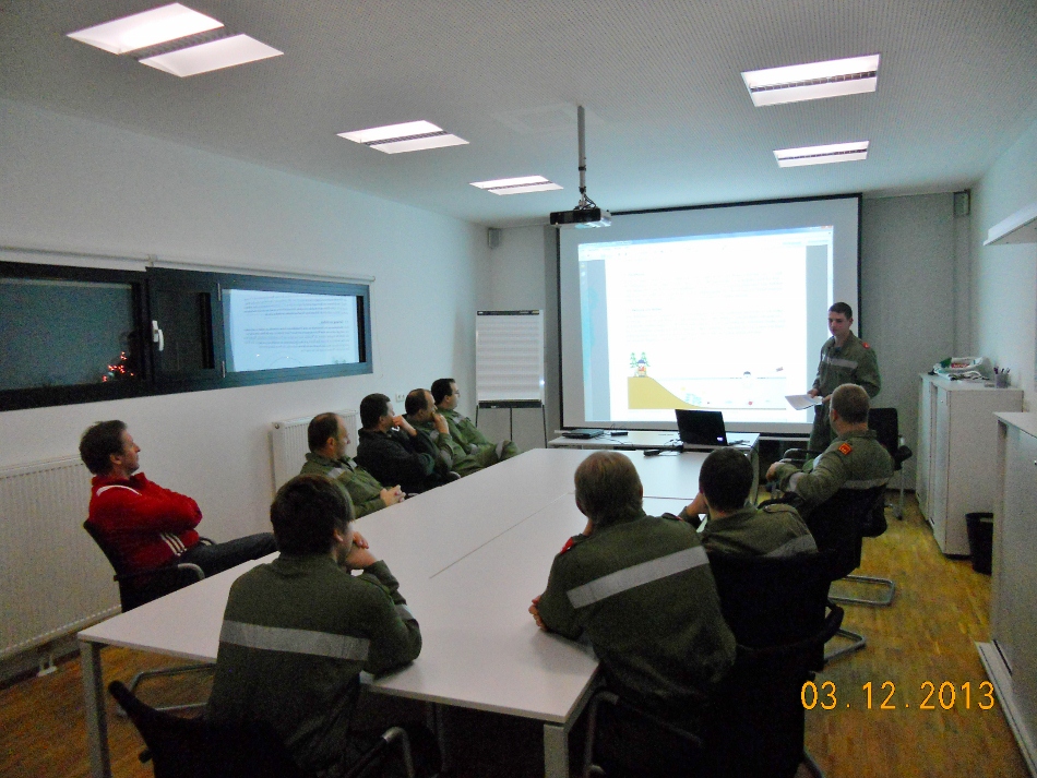 Zu Beginn der Übung wurden die Themen im Schulungsraum theoretisch durchbesprochen. Dabei präsentierte BI Stefan Doppler die Funktion und Bedienung des Warn- u. Alamierungssystems. HBM Markus Lindner erklärte die verschiedenen Gefahren und Techniken zur Rettung von im Eis eingebrochenen Personen.
