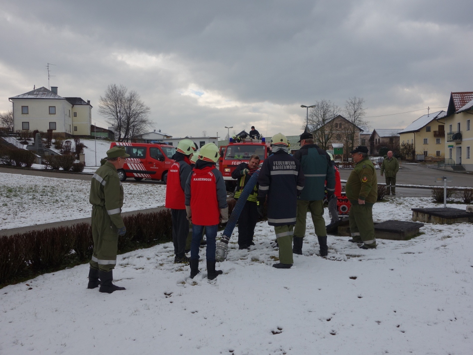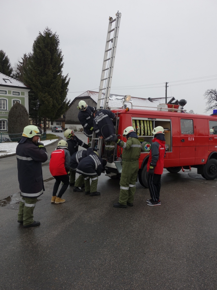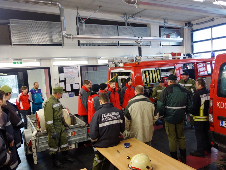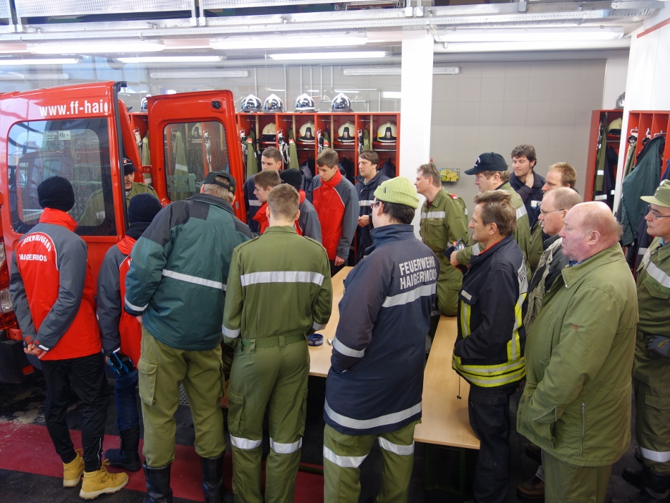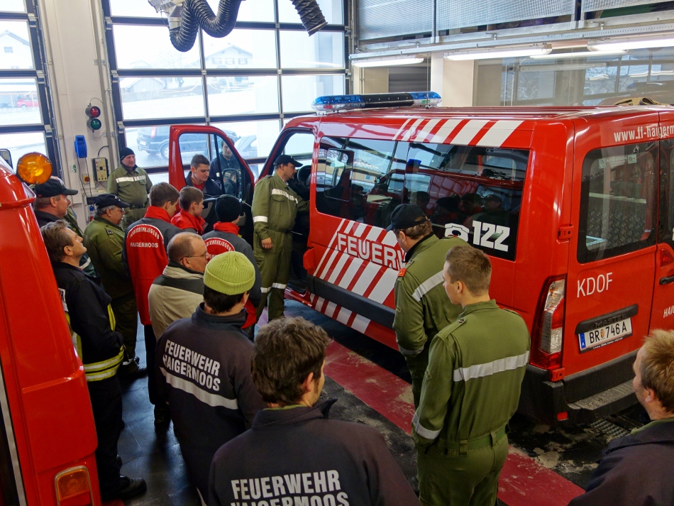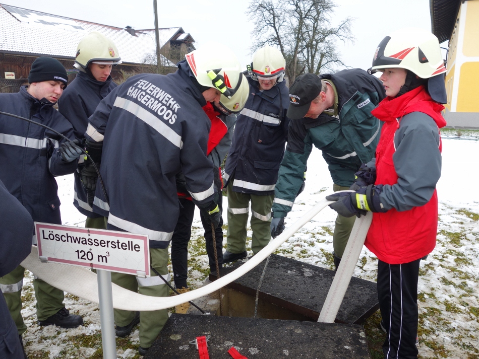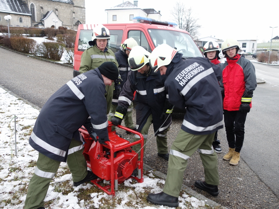 Bei einer Alarmierung am Wochentag ist der Großteil der Aktiven Mannschaft beruflich bedingt nicht in Haigermoos anwesend. Die erste Übung des Jahres am 25.1.2014 galt deshalb besondes den Kameraden, die in an diesen Tagen ausrücken können.