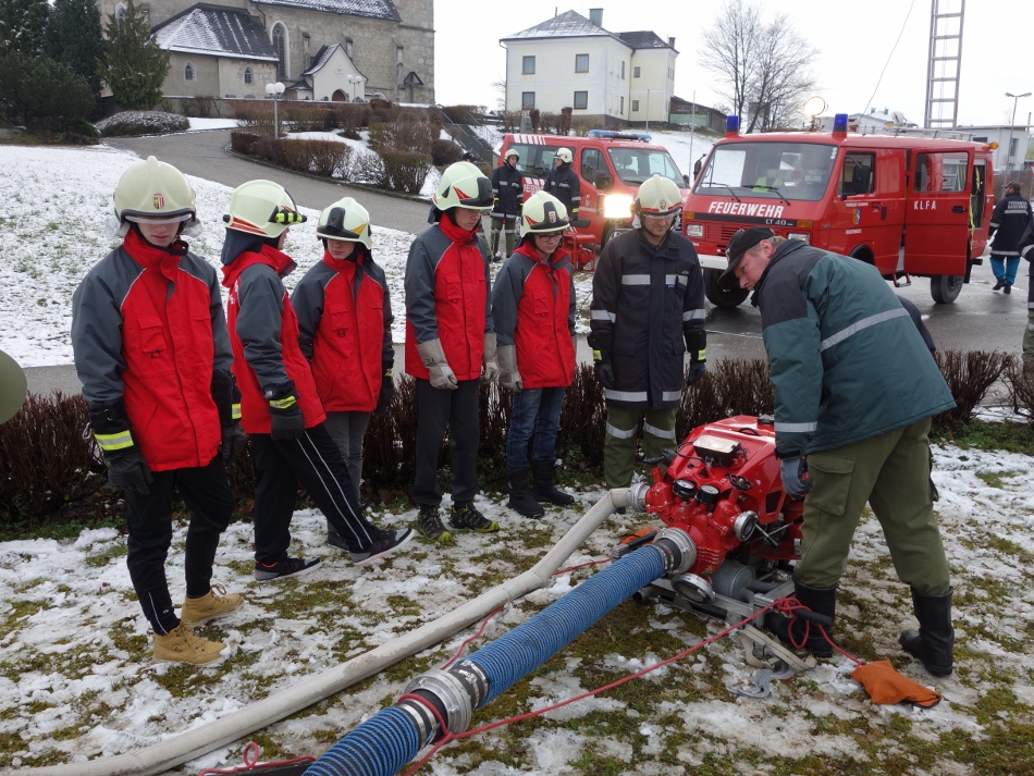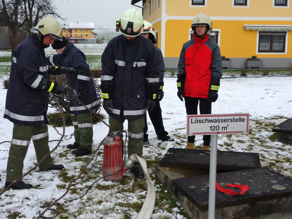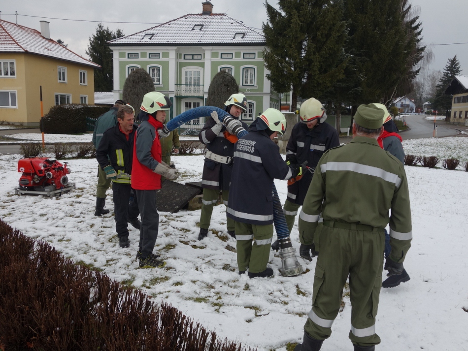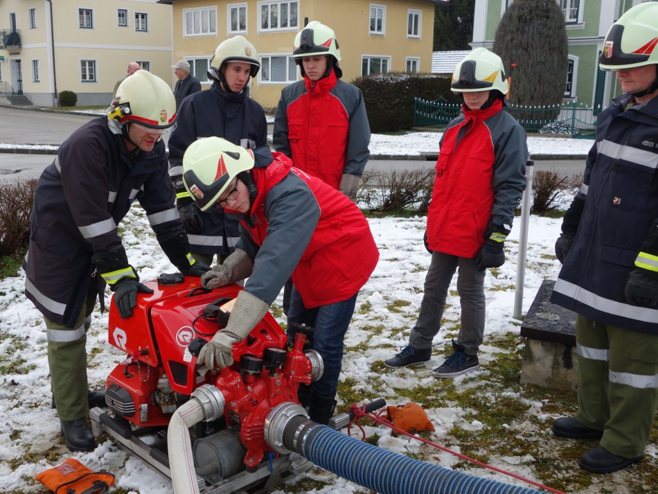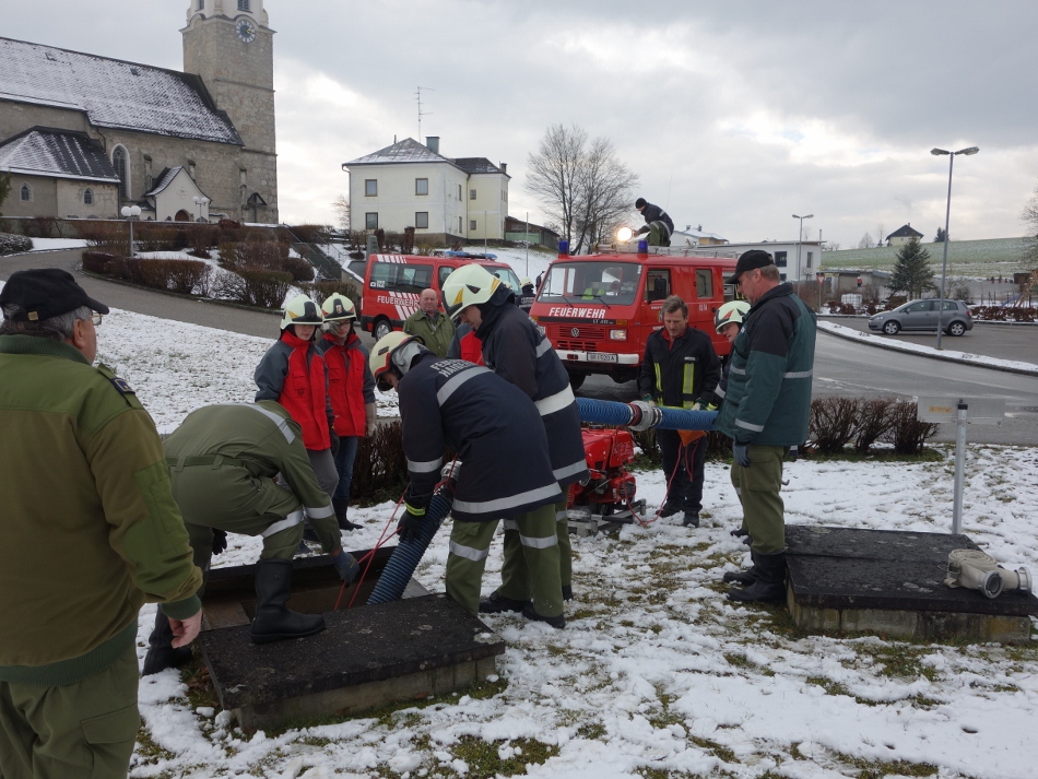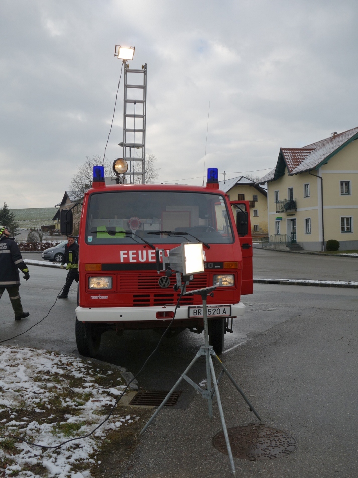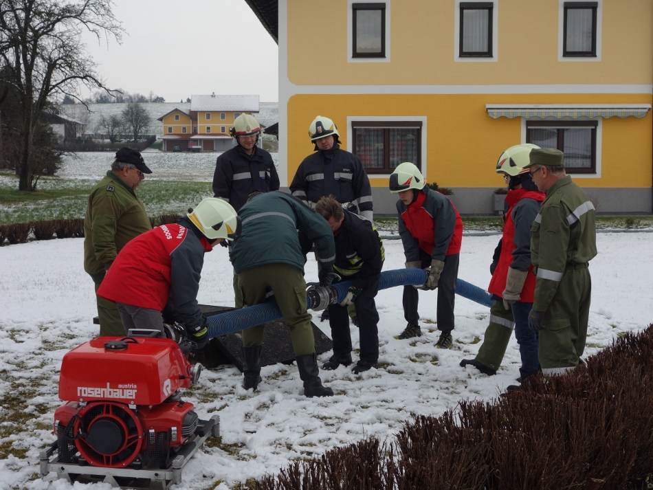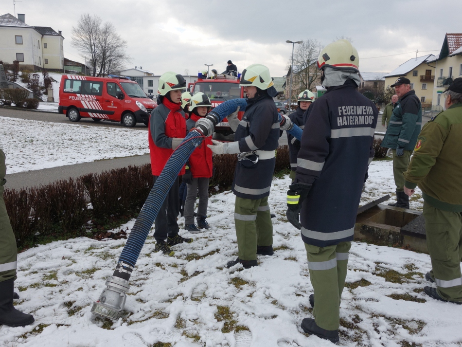 Bei einer Alarmierung am Wochentag ist der Großteil der Aktiven Mannschaft beruflich bedingt nicht in Haigermoos anwesend. Die erste Übung des Jahres am 25.1.2014 galt deshalb besondes den Kameraden, die in an diesen Tagen ausrücken können.