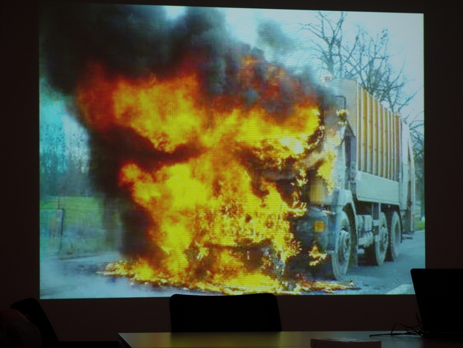 Nach der Präsentation wird mit Beispielen und Fotos von Einsätzen das Erlernte besprochen und die jeweils entsprechende Einsatztaktik geübt.