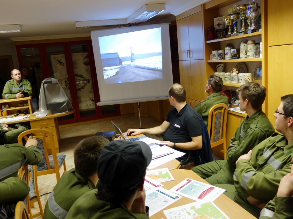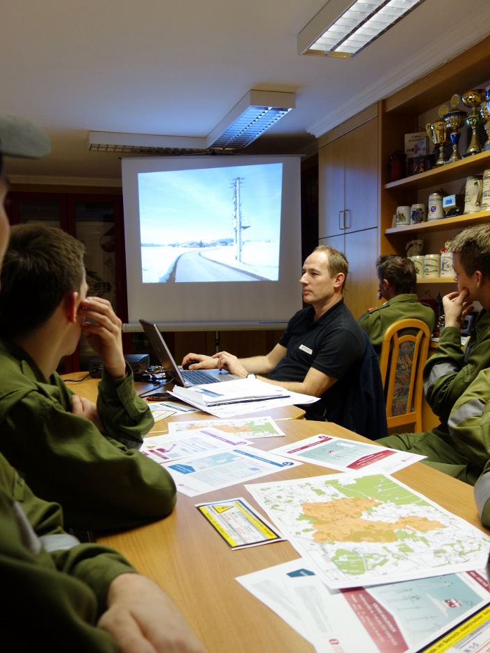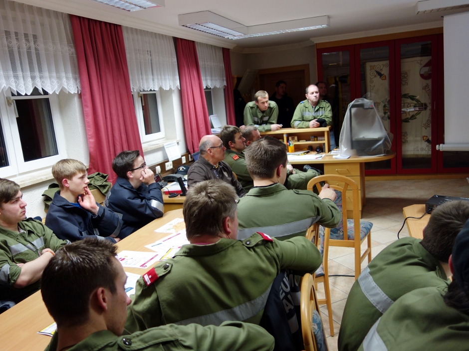 Im theoretischen Teil wurde im Feuerwehrhaus Franking auf die Gefahren und Vorgehensweisen bei Einsätzen im Bereich elektrischer Anlagen hingeweisen. Es wurden Bilder von Objekten im Gemeindegebiet von Haigermoos und Franking gezeigt. Anhand der Fotos von Hausanschlüssen, Transformatoren und Leitungen, sowie Photovoltaik Anlagen wurden die Einzelheiten behandelt.