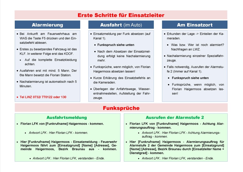 Geübt wurde am 10.3.2015 die ersten wichtigen Maßnahmen, die ein Einsatzleiter bei einer Alarmierung mit der Ankunft am Feuerwehrhaus einleiten soll.