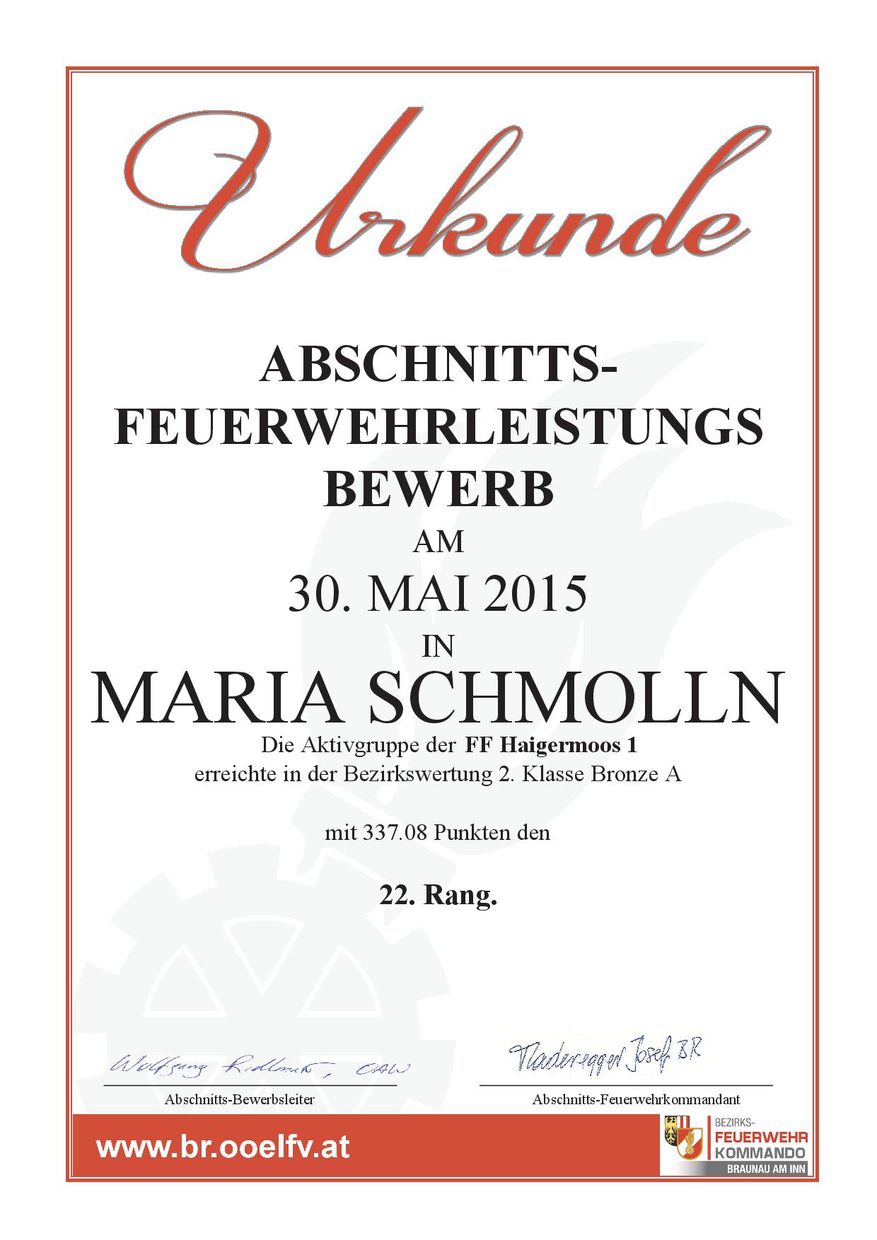 Am 30. Mai 2015 wurde der Abschnittsbewerb in Maria Schmolln – Abschnitt Mattighofen – abgehalten. Bei gutem Wetter nahmen 104 Jugendgruppen und 107 Aktivgruppen teil.
