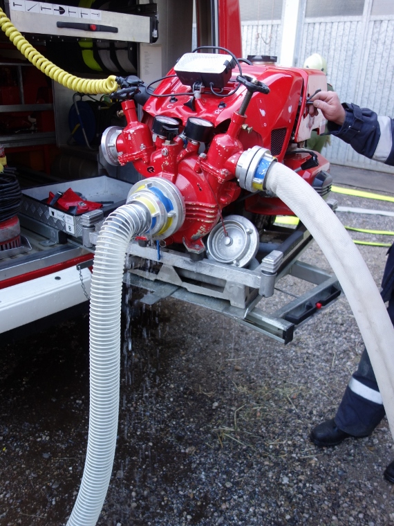 Nach der Besprechung dieser verschiedenen Varianten wurde noch eine weitere Variante gezeigt, bei der die Leitung in einem ca. 2 m Bund getragen, durch einen Kugelhahn im Bund befüllt und dann erst ausgezogen wird.