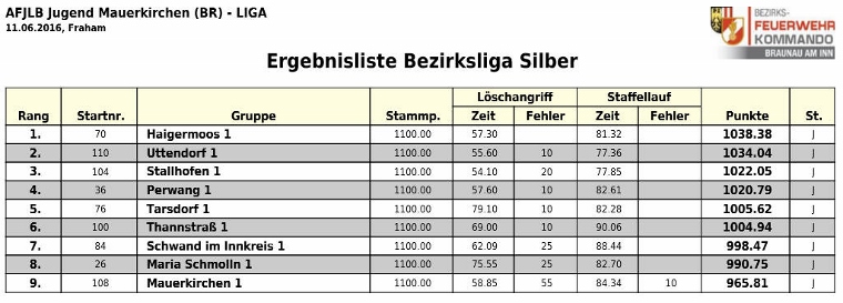 Beim Abschnittsbewerb am 11.6.2016 in Fraham hat unsere Jugendgruppe wieder eine tolle Leistung erbracht.