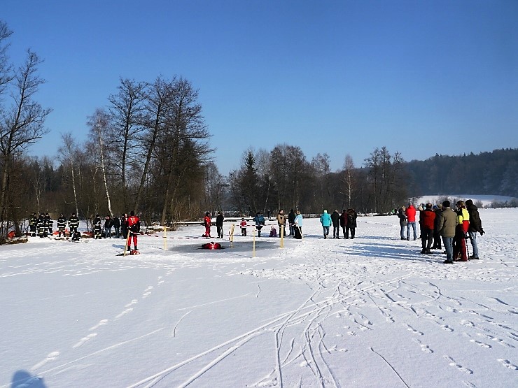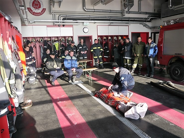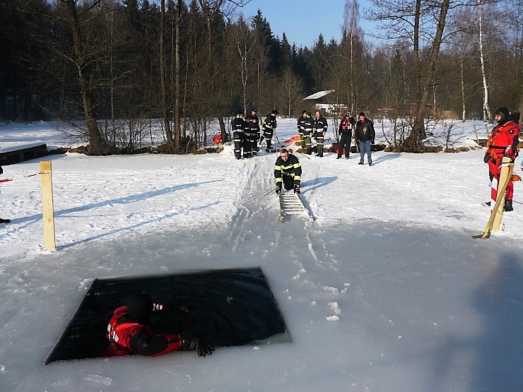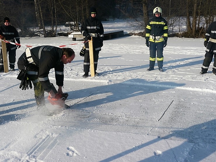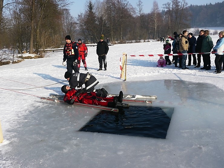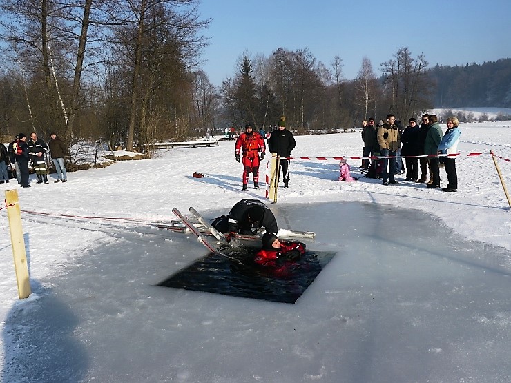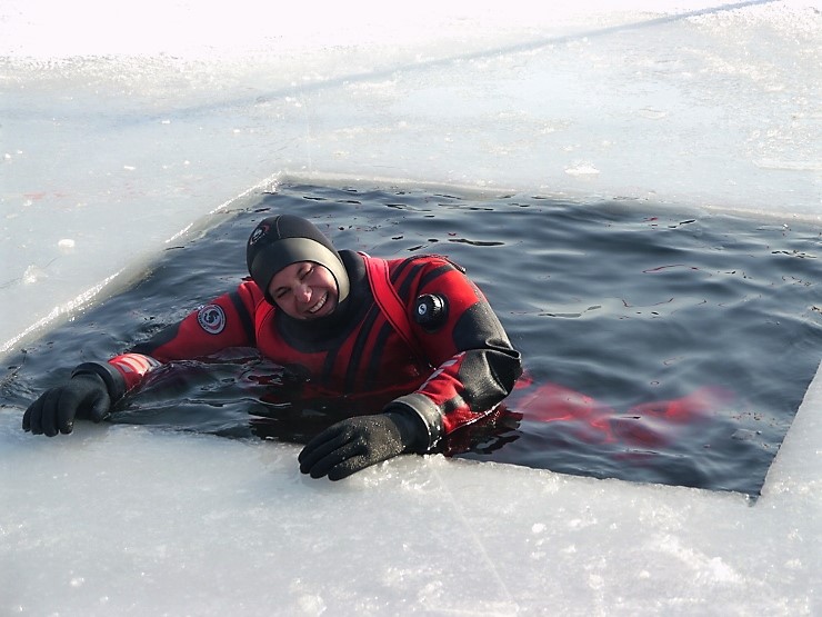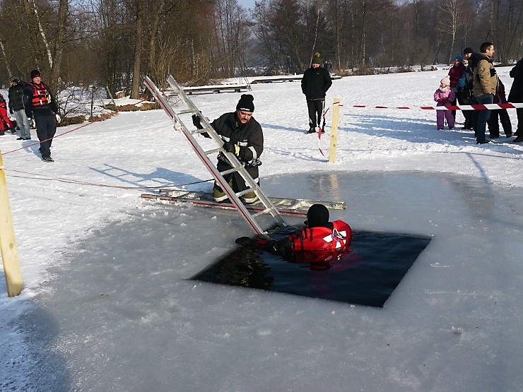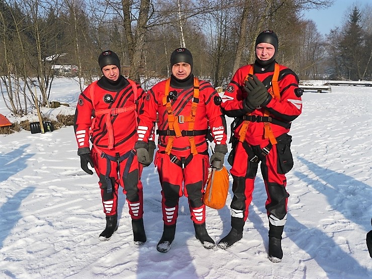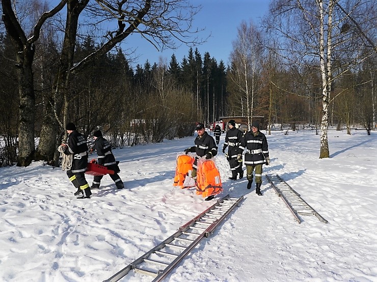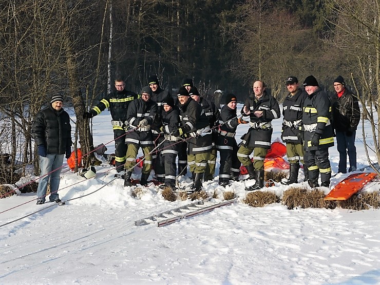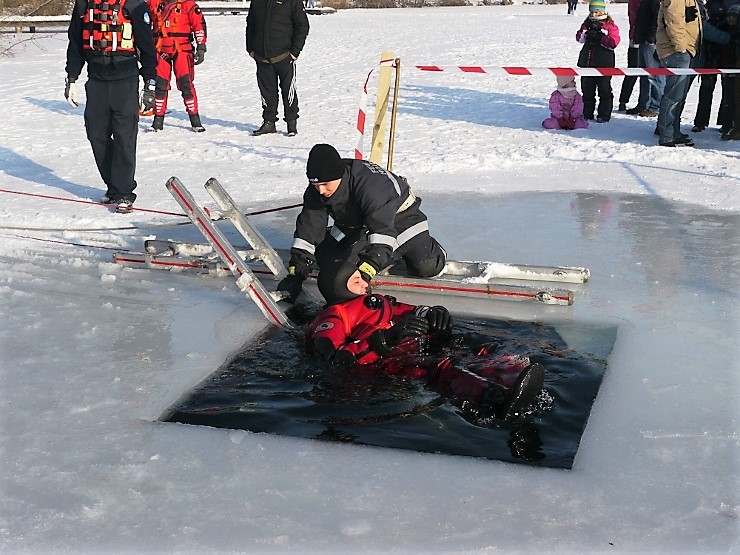 Übungsannahme war eine im Eis eingebrochene Person, die aus der Einbruchstelle gerettet werden soll. Es wurde die Annäherung zur Einbruchstelle mit Leitern und Tragefläche, sowie die Rettung des Unfallopfers mit Beförderung zum Ufer durch mehrere Kameraden geübt. Es wurden uns dabei von der FF Tauchgruppe Braunau einige wichtige Verhaltensregeln erklärt:
