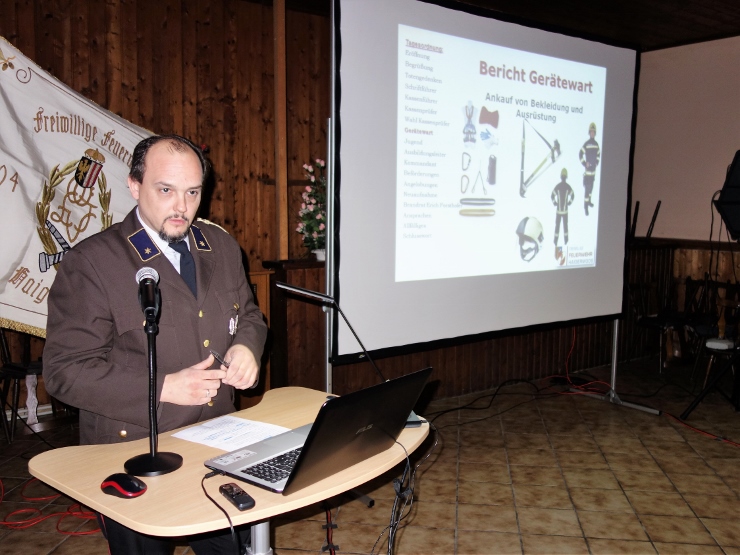 Der Gerätewart AW Bernhard Gläser berichtet über den Ankauf von Einsatzkleidung und