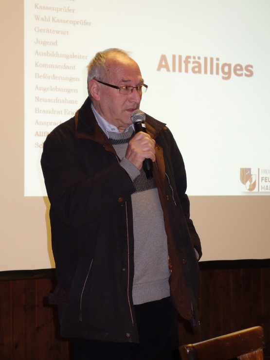 HBI Erich Stöllberger bedankt sich bei allen den Mitgliedern für die geleistete Arbeit, Festausrückungen, kirchliche Ausrückungen und sonstigen Feuerwehrausrückungen.