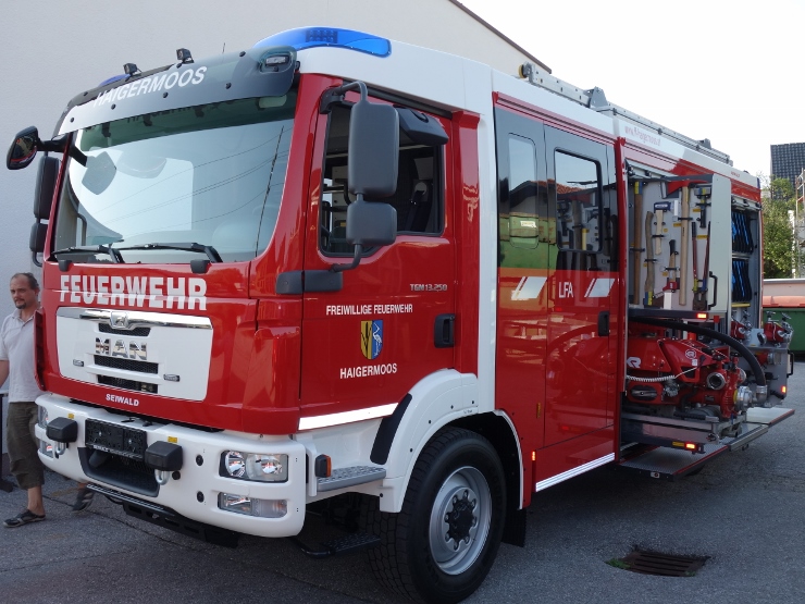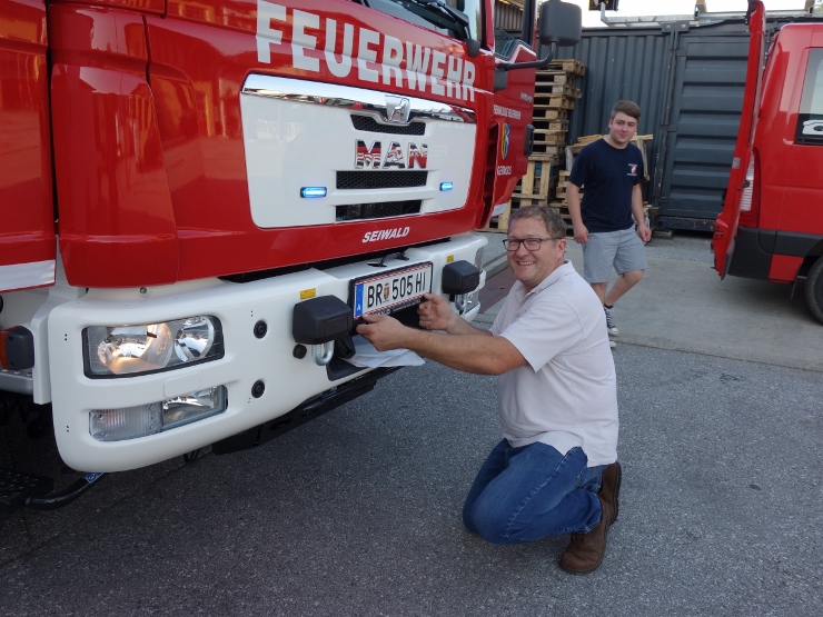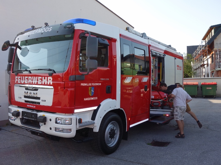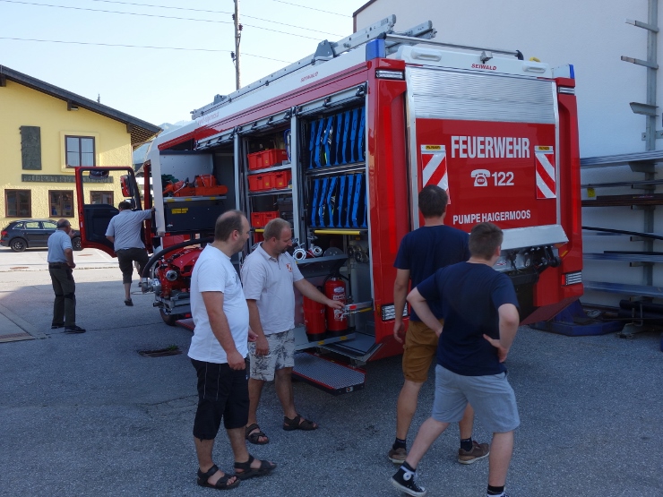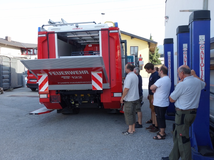 Mit großer Freude wurde am 1. August 2017 das fertiggestellte Löschfahrzeug direkt vom Werksgelände der Fa. Seiwald in Oberalm bei Hallein abgeholt.
