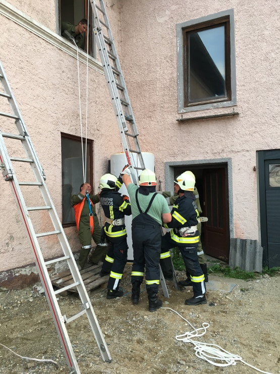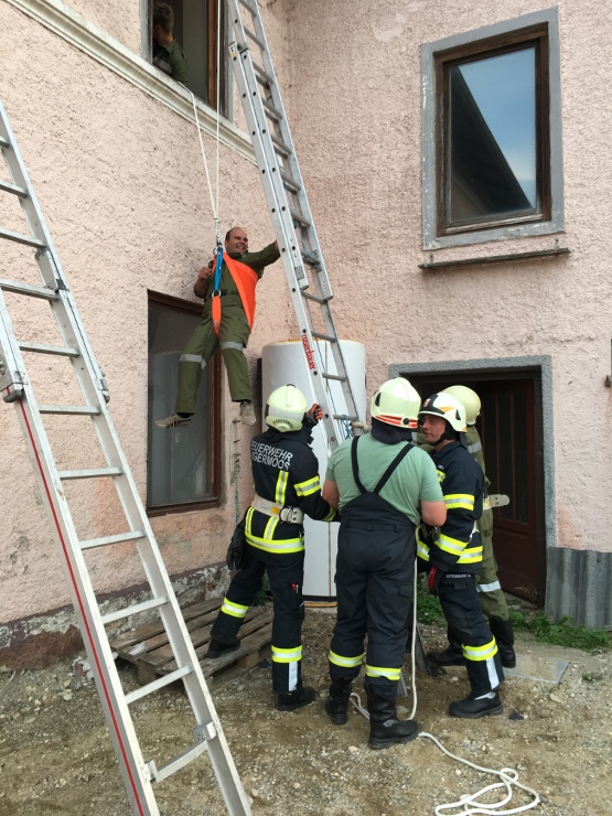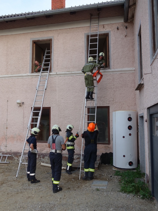 Die Monatsübung im Juni wurde am 5.6.2018 zum Thema "Personenrettung mit tragbaren Leitern" abgehalten.