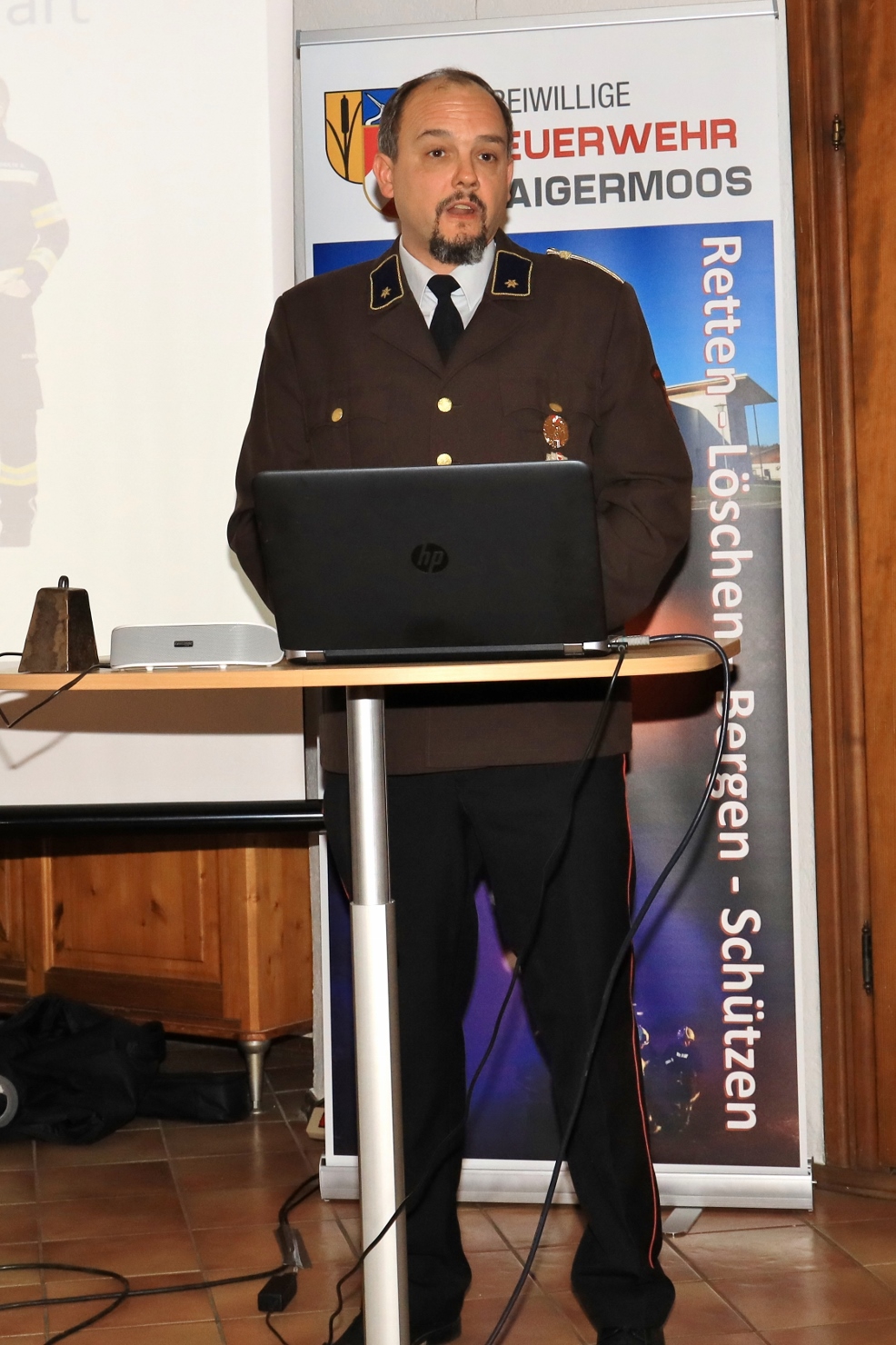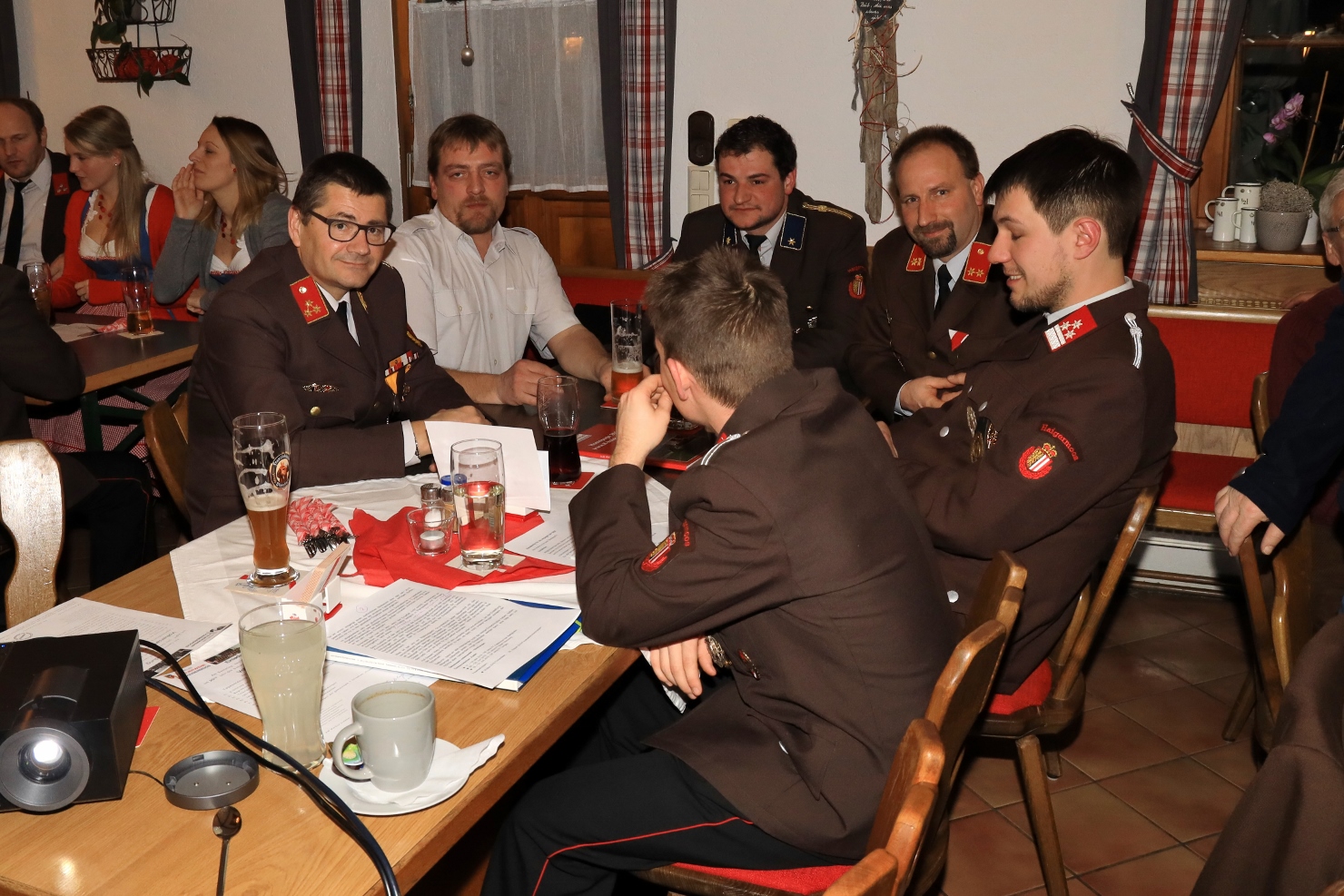 20:00 Uhr im Gasthaus Schwarzer Adler, Spick in Weyer, eröffnet.Kommandant HBI Erich Stöllberger begrüßt Pater Georg Bakowski, den Bürgermeister und Ehren-Kdt. Hans Schwankner, den neu gewählten AFK, Brandrat Johann Stegbuchner aus Geretsberg, die Ehrenmitglieder, die anwesenden Vertreter des Gemeinderates, unsere Fahnenpatinnen und Marketenderinnen, den Vertreter der Nachbarfeuerwehr Trimmelkam die Vertreter der örtlichen Vereine und Gruppierungen, die Jugendgruppe, das Kommando, das erweiterte Kommando und alle anwesenden Kameraden. |