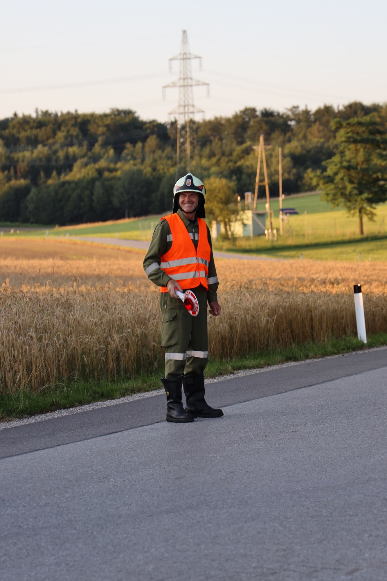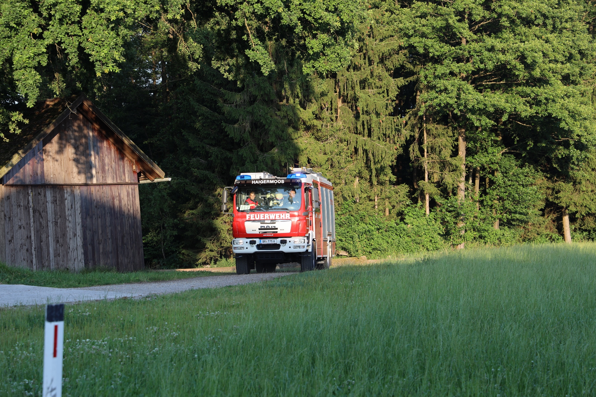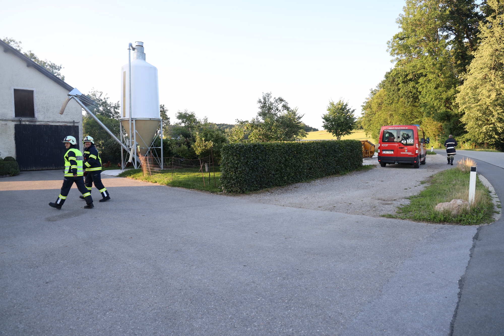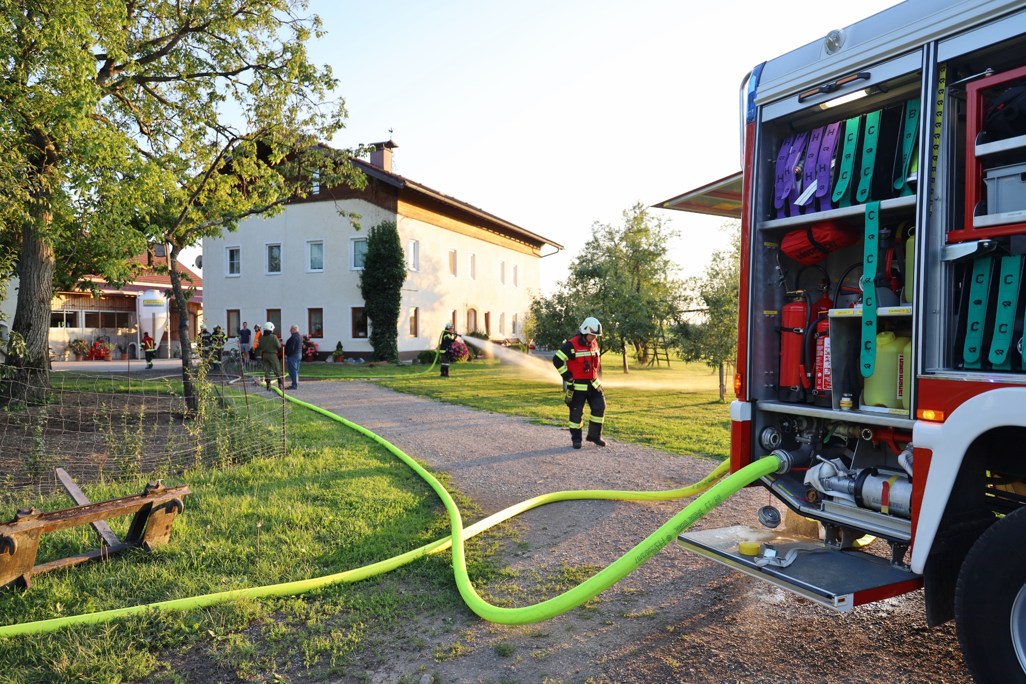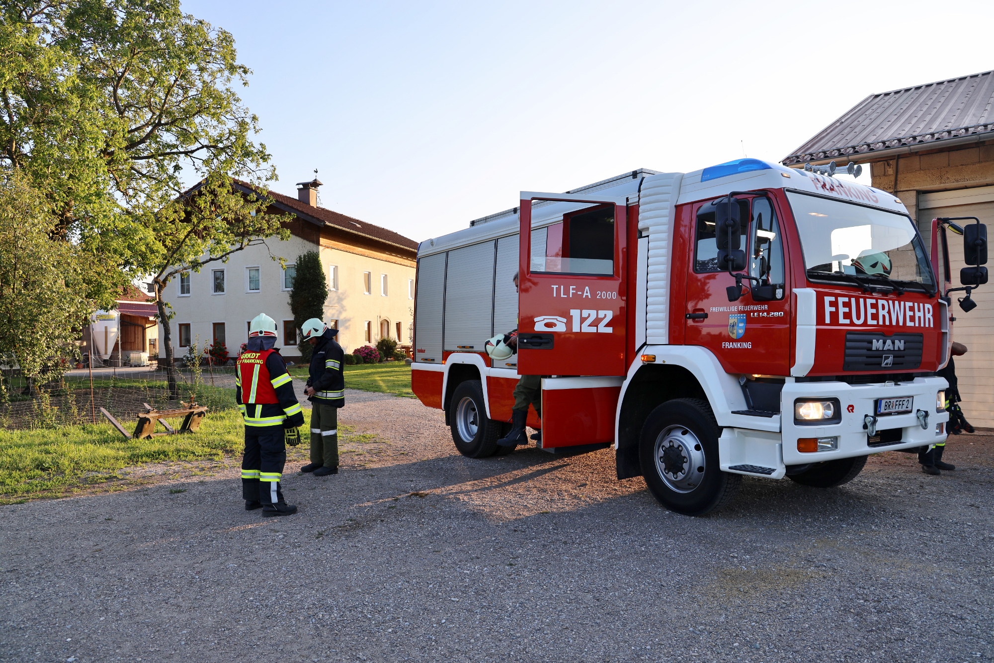 Die Drehleiter der FF Ostermiething wurde fiktiv alarmiert und ein entsprechender Aufstellplatz freigehalten.