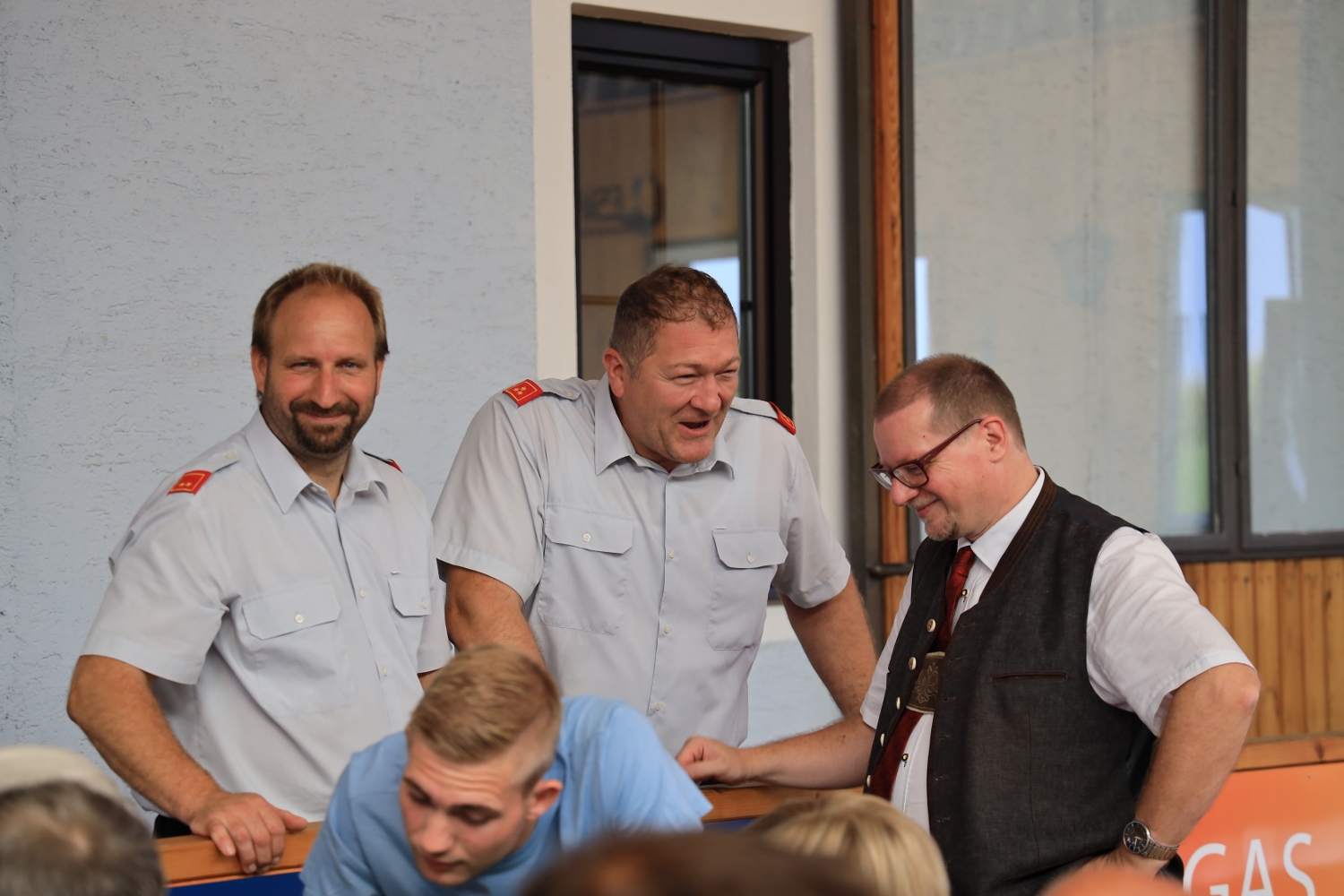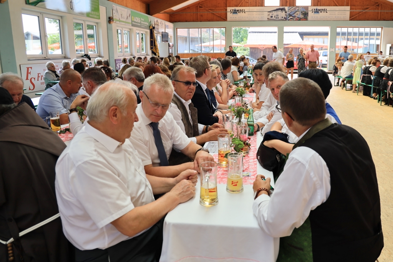 Anschließend wurde der Feuerwehr Frühschoppen in der Stocksporthalle abgehalten. HBI Erich Stöllberger konnte bei sommerlichen Temperaturen zahlreiche Besucher begrüßen.