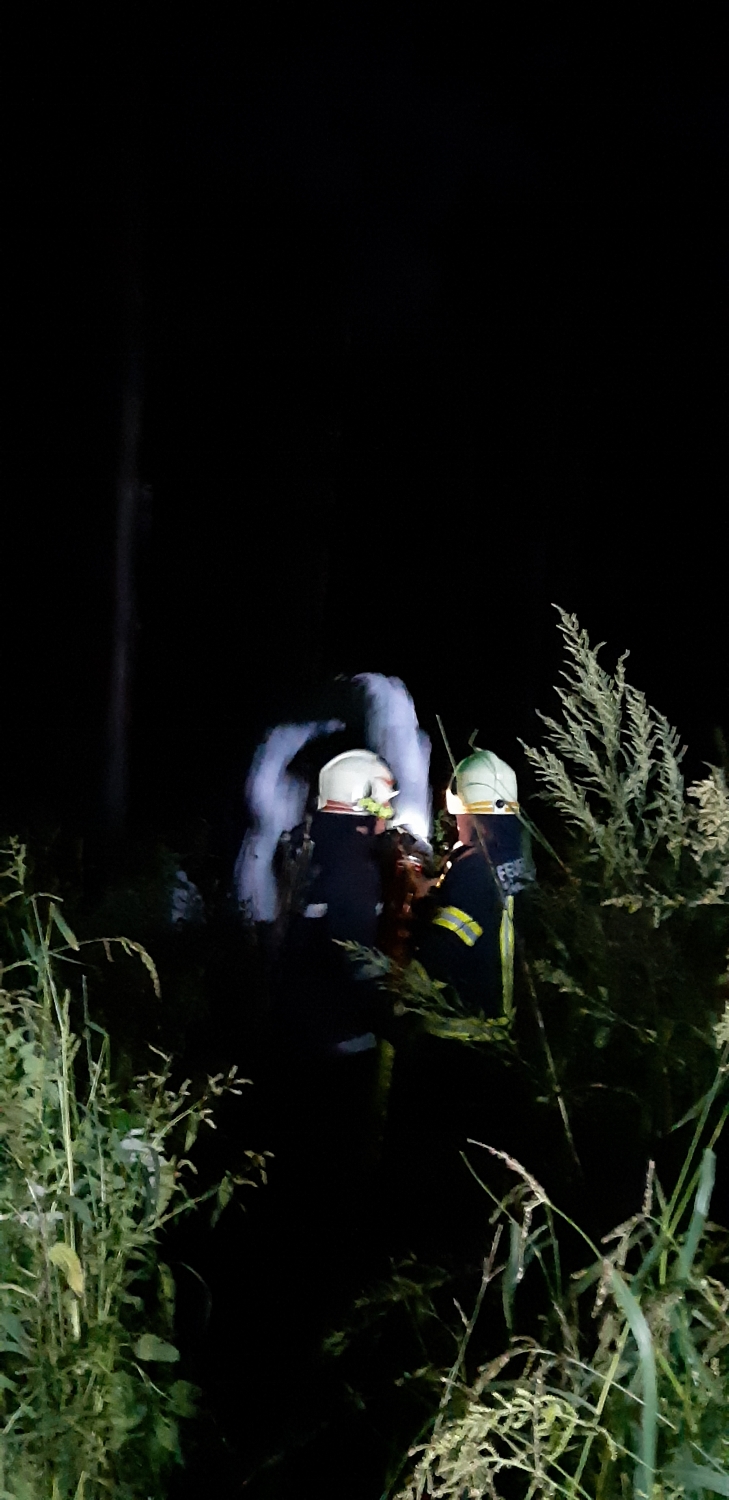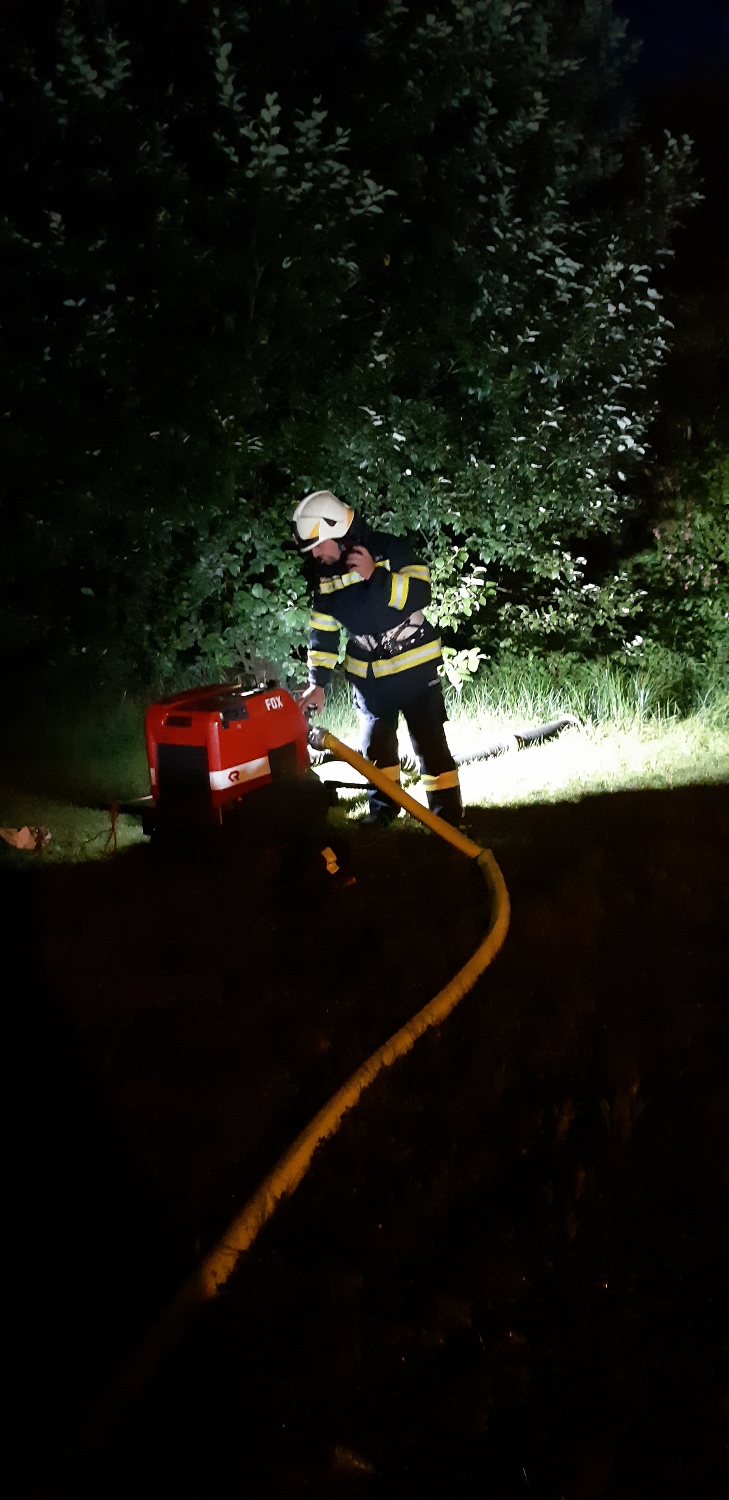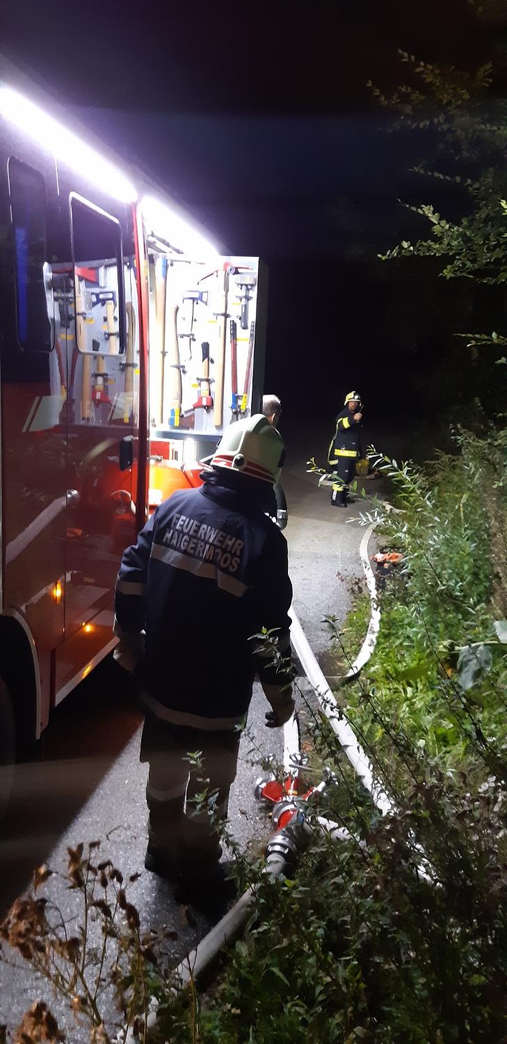 Die Übungsannahme war der Brand eines KFZ in unmittelbarer Nähe zu einem Waldstück. Der Brand wurde mittels Schaumrohr gelöscht. Wasserentnahmestelle war der Bach in Trimmelkam, der zu diesem Zeitpunkt nicht aufgestaut war, dennoch ausreichend Wasser lieferte.