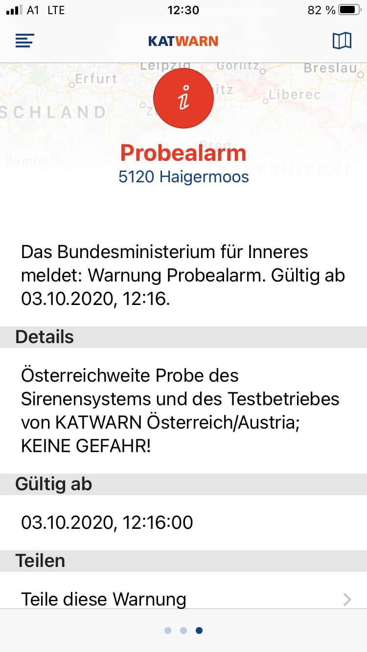 Am Samstag, 3. Oktober 2020 wurde wieder zwischen 12.00 und 12.45 Uhr der Zivilschutz-Probealarm durchgeführt, der die Bevölkerung mit den verschiedenen Sirenensignalen vertraut machen soll. Alle der 1430 Sirenen in Oberösterreich haben funktioniert.