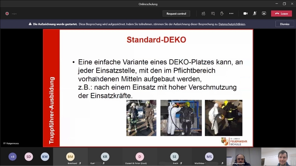 Da Corona-bedingt eine Schulung im Feuerwehrhaus nicht möglich war, wurde die Ausbildung als Onlineschulung abgehalten. Die Organisation und die Durchführung hat sehr gut funktioniert und wird ggf. mit weiteren Themen fortgesetzt.