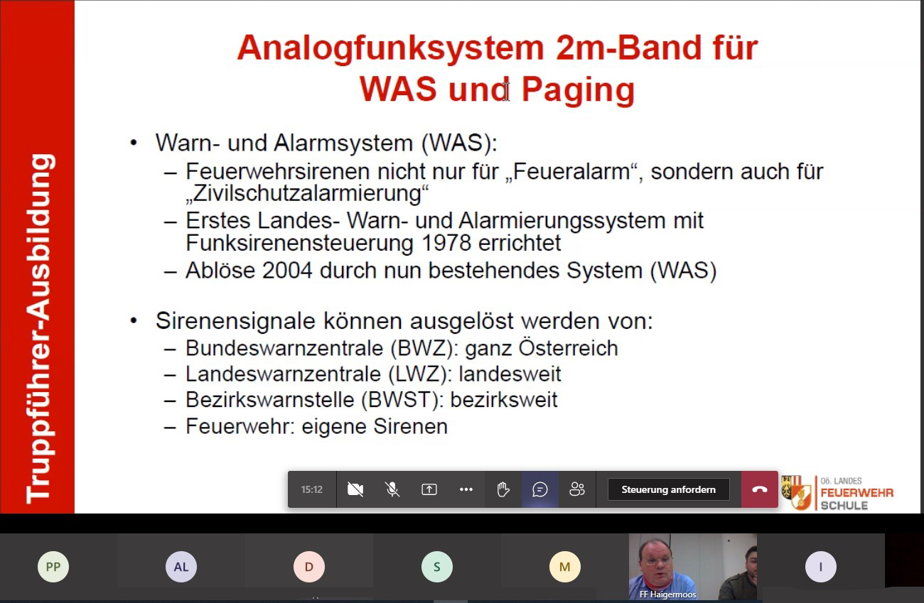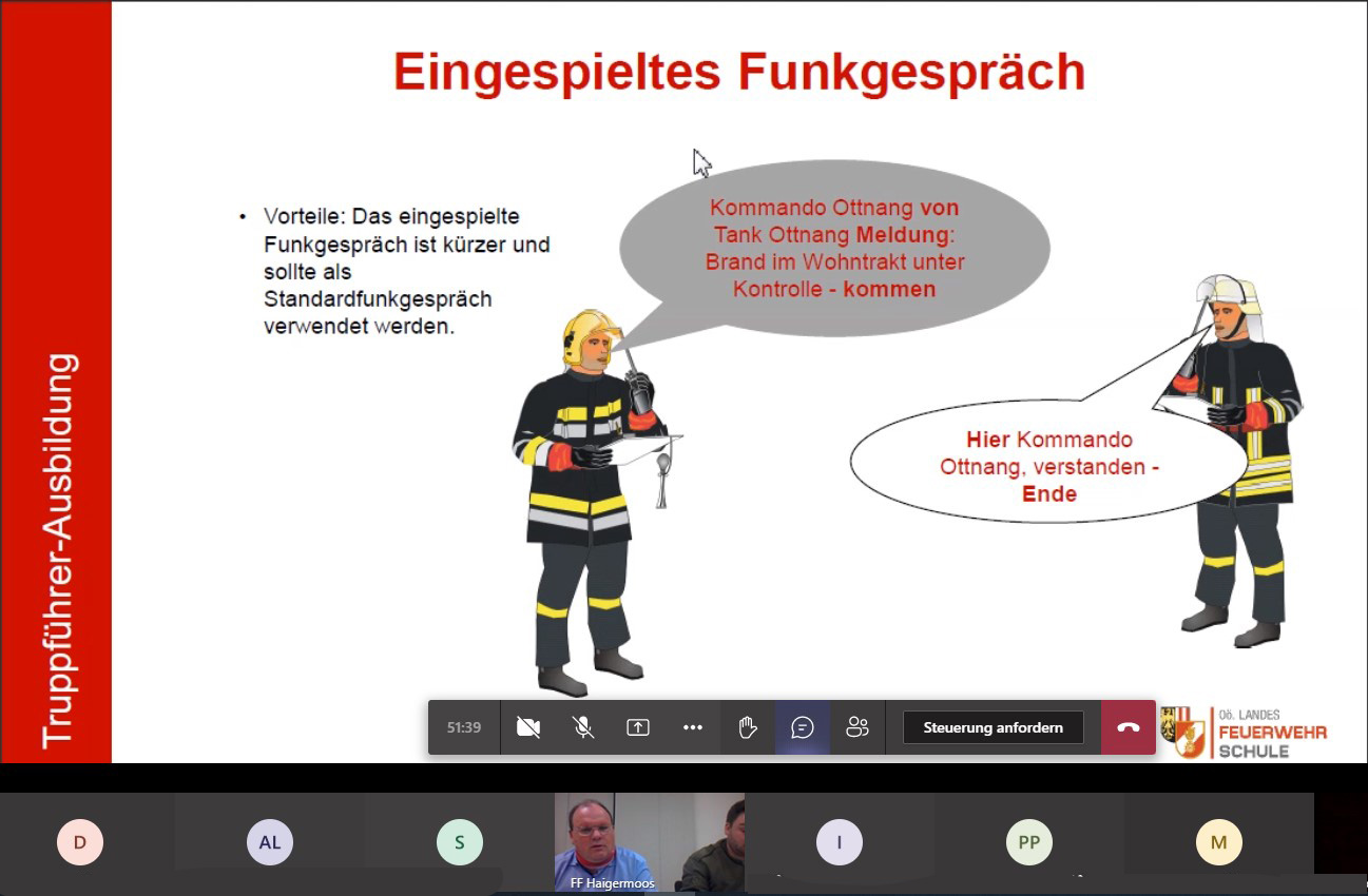 Da Corona-bedingt eine Schulung im Feuerwehrhaus nicht möglich war, wurde die Ausbildung als Onlineschulung abgehalten.