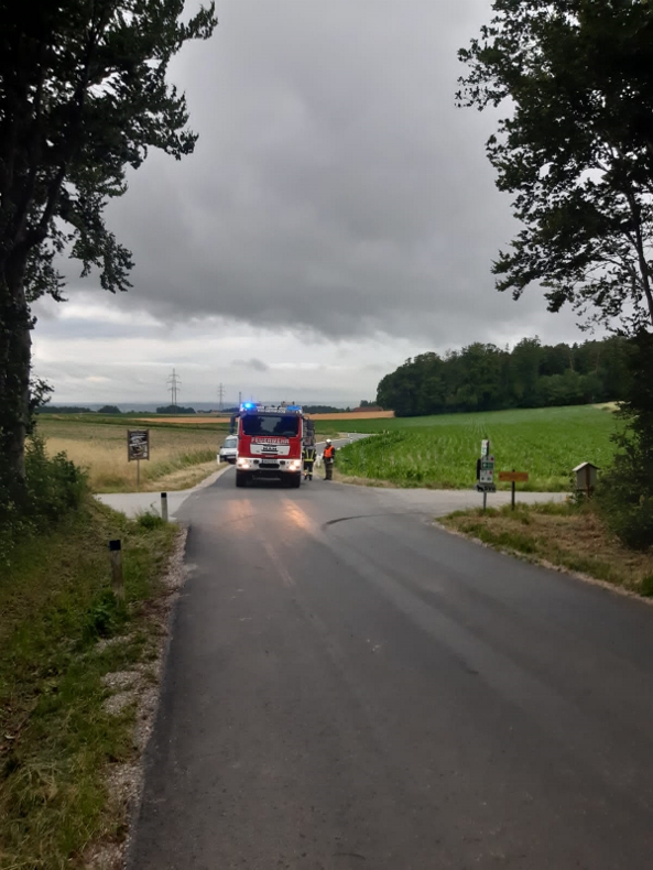 So auch unsere Feuerwehr am 29.6.2021 um 18:12 Uhr zur Räumung der Fahrbahn auf der Straße L504 in Richtung Neuhausen.
