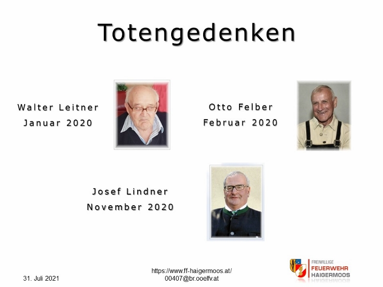Wir gedenken aller verstorbenen, gefallenen und im Dienste verunglückten Feuerwehrkameraden in Ehrfurcht und Dankbarkeit.
