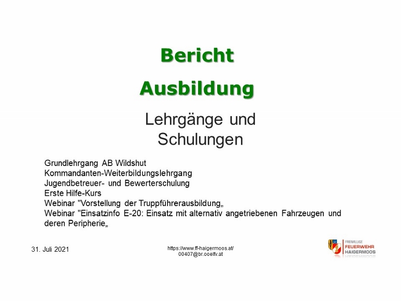 an zahlreichen Ausbildungen und Lehrgängen. Danksagung an die Gruppenkommandanten für die Vorbereitung und Durchführung sämtlicher Übungen und Schulungen, aber auch an die Aktiven der Feuerwehr für die Teilnahme an der Ausbildung. |