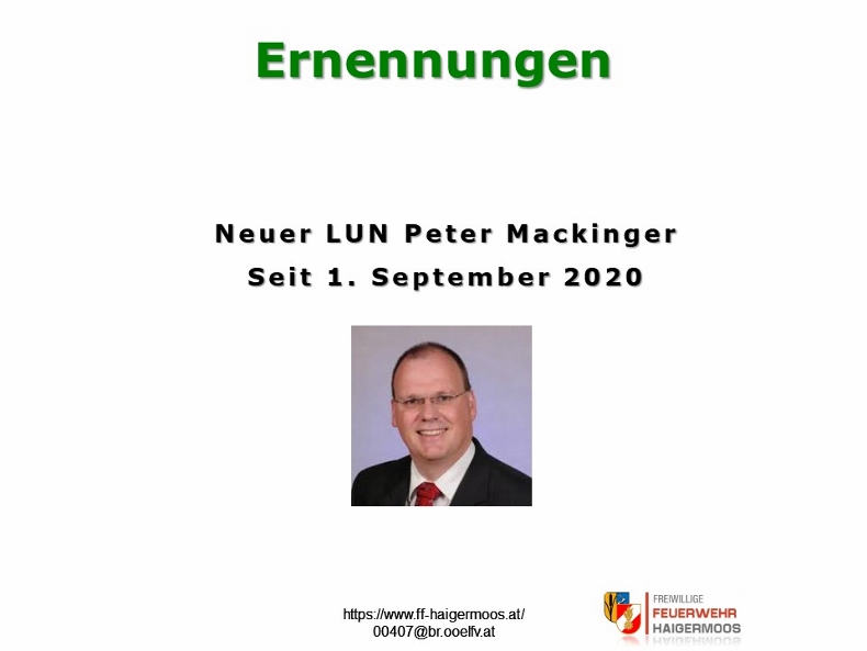 Bürgermeister Hans Schwankner erwähnte in seinen Worten, die Herausforderungen aufgrund der Elementarereignisse. Besonders bedankte er sich bei der Mannschaft der FF Haigermoos über die enorme Eigenleistung und damit verbundenen Einsparungen beim Umbau zum Digitalfunk.