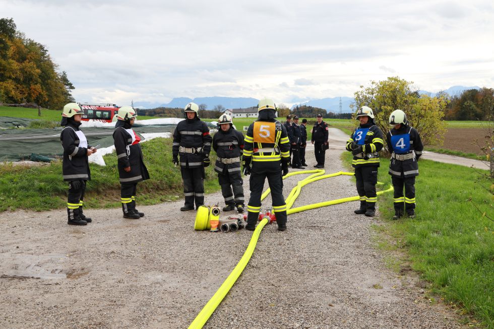 Am Samstag, 15. Oktober 2022 ist die FF Haigermoos auf dem Anwesen der Familie Lindner (Bauernschmied) zur Branddienstleistungsprüfung in Gold angetreten.