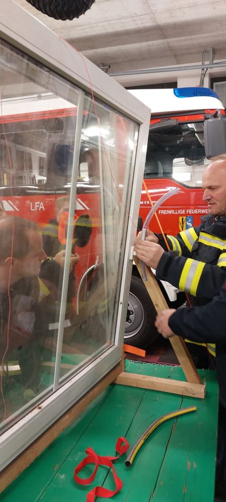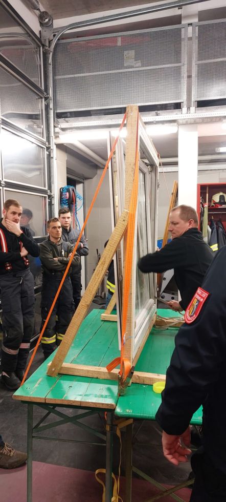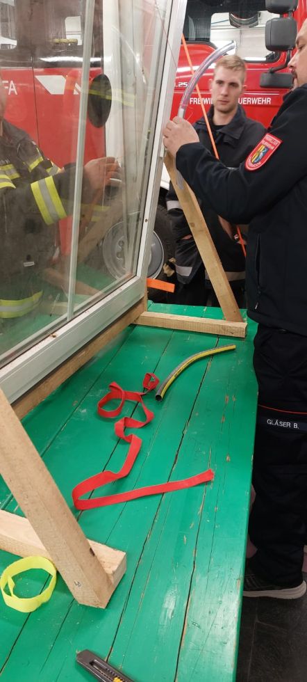 Es wurden verschiedene Situationen und Szenarien besprochen und gleichzeitig auch praktisch beübt. Für das Öffnen eines gekippten Fensters wurden einige Dinge ausprobiert. Mit dem Halligan-Tool wurde ebenfalls geübt. An der Übung nahmen 17 Mann teil.