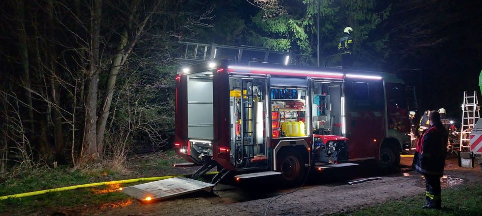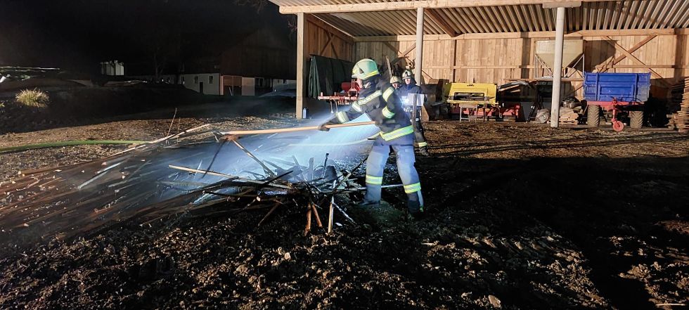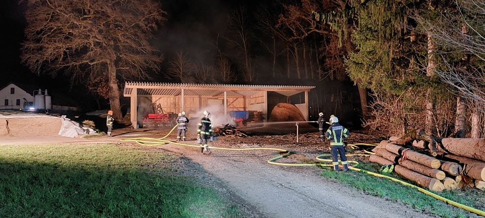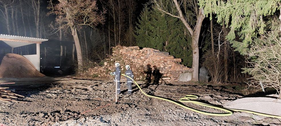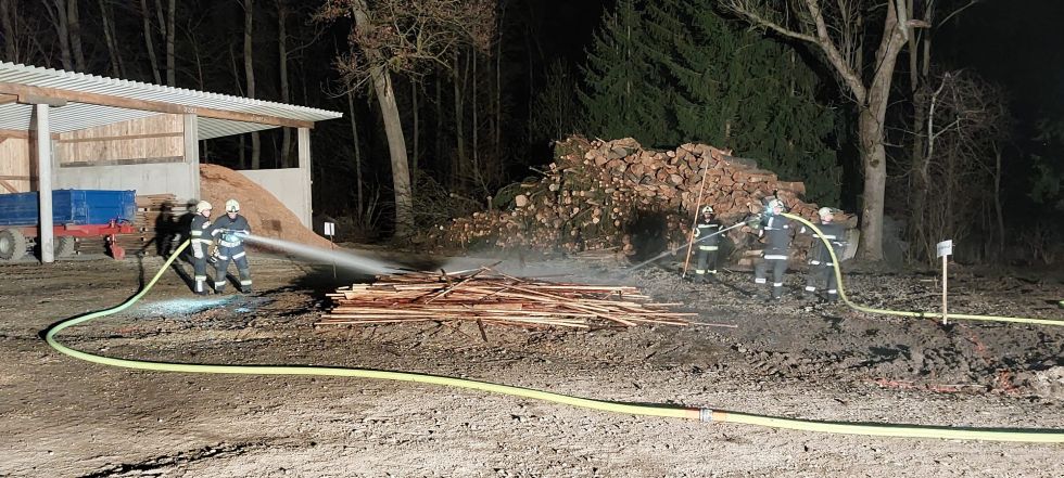 Bei der Monatsübung am Dienstag 21. März 2023 lautete die Alamierung auf Brand Baum, Flur, Böschung. Es brannte ein Holzstapel.