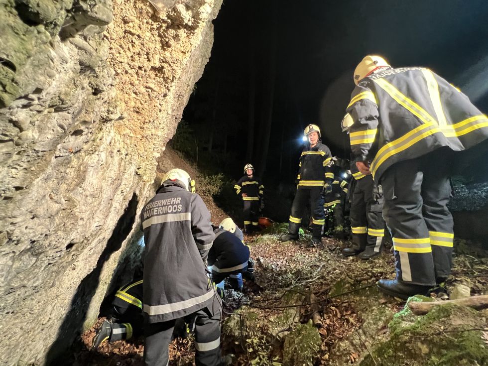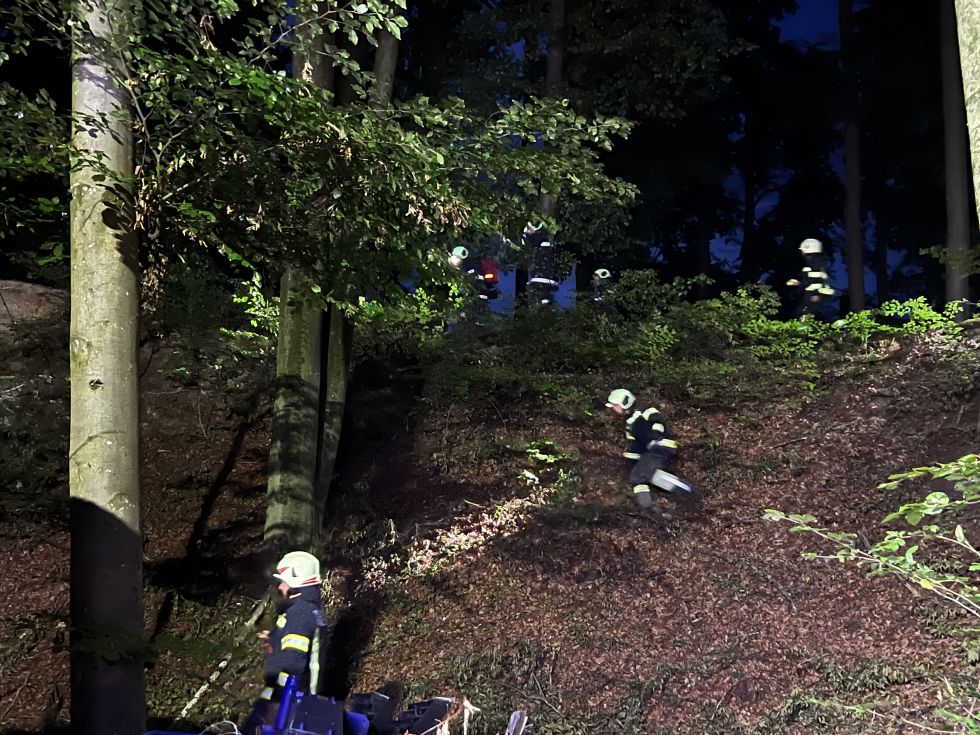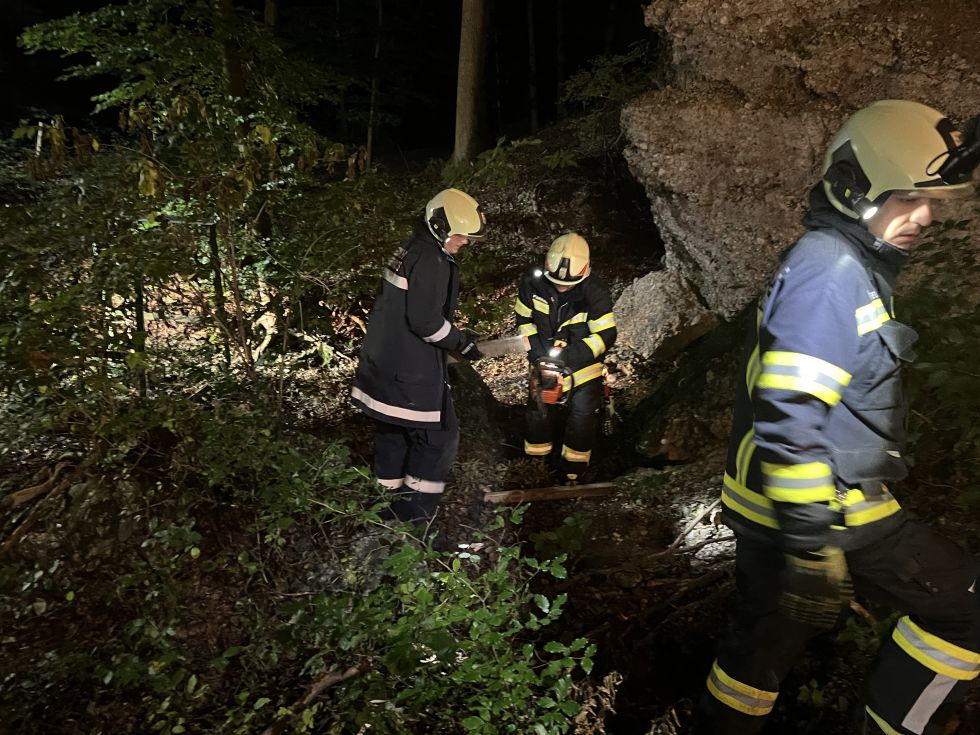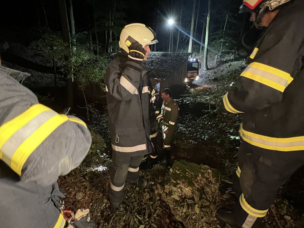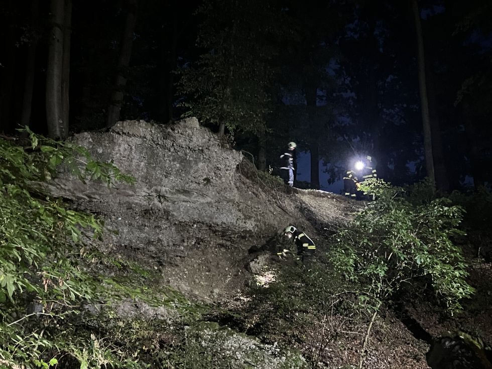 Die Ausgangslage war: Ein Schwammerlsucher ist nicht mehr nach Hause zurückgekehrt, es besteht der Verdacht, dass er verletzt ist. Wir fuhren mit beiden Fahrzeugen aus. Es wurde eine Suchkette gebildet und ein Waldgebiet durchkämmt.