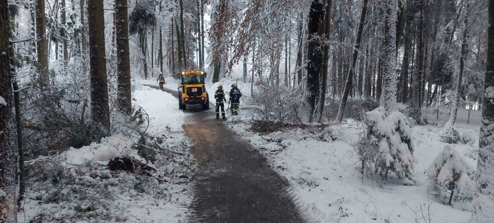 Durch den starken Schneefall der vergangenen Tage stürzten eine Vielzahl von Bäumen auf die Mühlstraße. Am Sonntag den, 03.12.2023, begannen wir zuerst die am Vortag gesperrten Straßen freizumachen und unterstützten anschließend unsere Kameraden aus den Nachbargemeinden beim Freimachen der Mühlstraße sowie der angrenzenden Straßen.