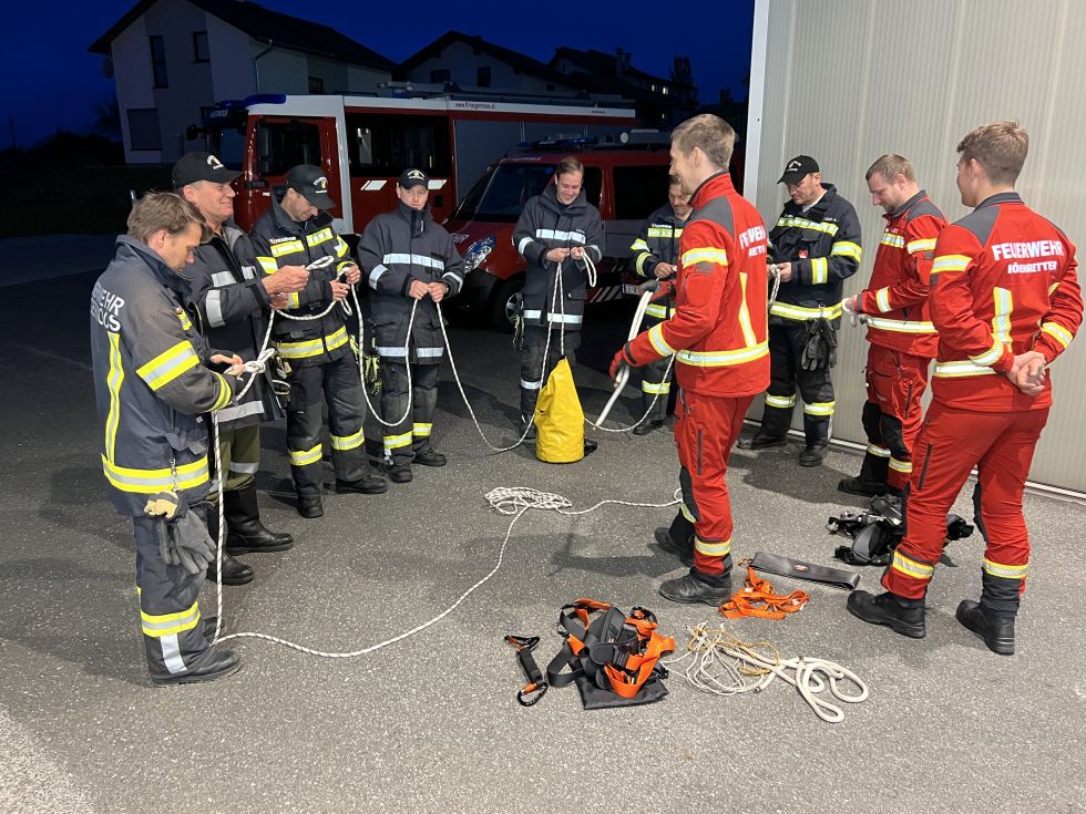Am 09.04.2024 durften wir den Höhenretter-Stützpunkt Braunau bei uns in Haigermoos begrüßen. Nach einer kurzen Einführung über das Stützpunktwesen und die Besonderheiten der Höhenretter-Stützpunktes sichteten wir gemeinsam unsere Ausrüstung zur Absturzsicherung. Die Kameraden des Stützpunktes konnten uns viele nützliche Hinweise zur zukünftigen Nutzung unserer Ausrüstung mitgeben.