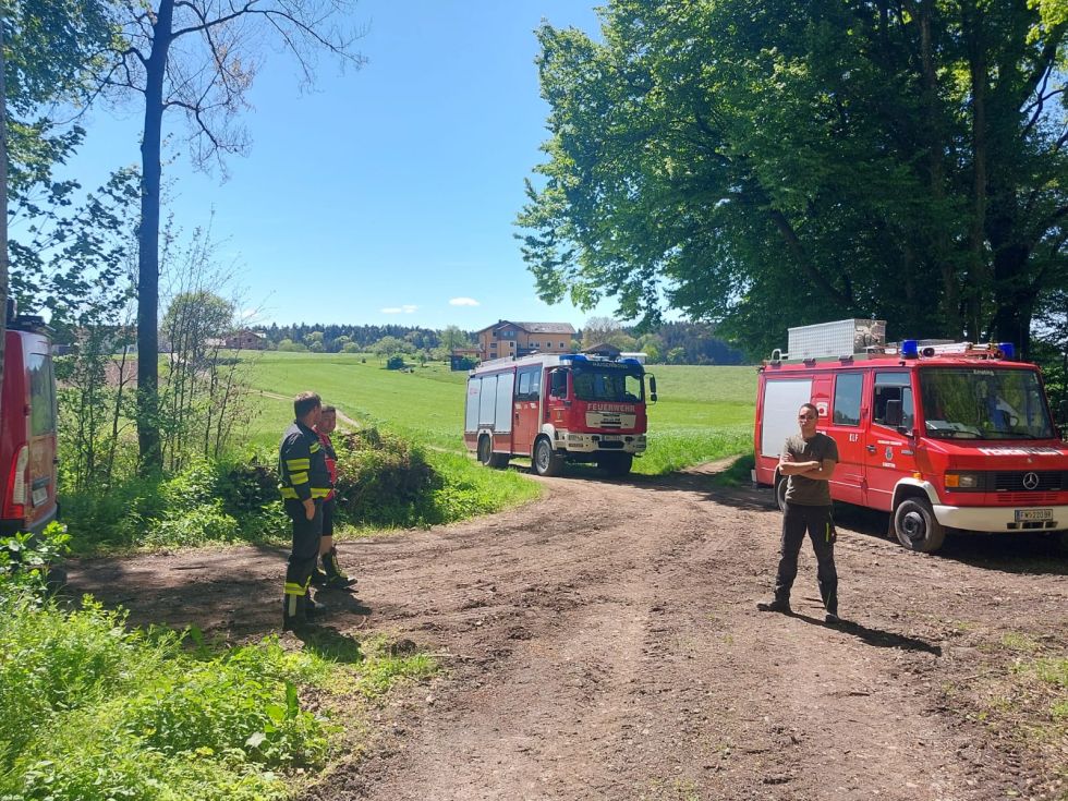 Während bereits einige Kameraden mit einem Ölverlust eines Holztransporters beschäftigt waren, ertönte die Sirene. Unter dem Einsatzstichwort „Tierrettung“ wurden wir aufgrund von entlaufenen Jungrindern alarmiert. Bei der Ausfahrt in Richtung Weyer wurden bereits zwei Rinder gesichtet. Die FF Haigermoos versuchte diese beiden Rinder einzufangen. Zeitgleich kam aus der Bevölkerung der Hinweis, dass auch im Ortsgebiet Ernsting ein Rind herumlief. Da die Kameraden der FF Haigermoos noch mit den Rindern im Raum Weyer beschäftigt waren, wurde die FF Ernsting mittels Alarmierungsauftrag hinzugezogen. Nachdem die FF Haigermoos die beiden Rinder eingefangen hatte, unterstützten die Kameraden die FF Ernsting. Das Rind war nun aber bereits im Raum Fugging unterwegs. Das Rind rannte in den angrenzenden Wald und die Kameraden verloren den Sichtkontakt. Es wurde noch ein Waldstück mittels einer Suchkette abgesucht. Leider musste die Suche aber erfolglos abgebrochen werden.