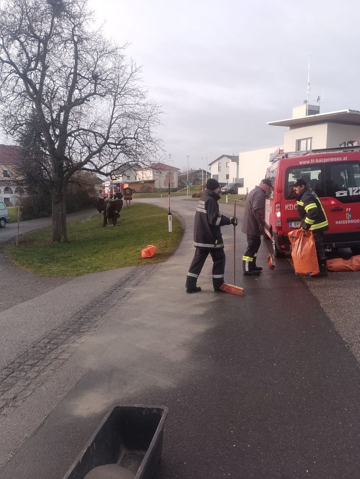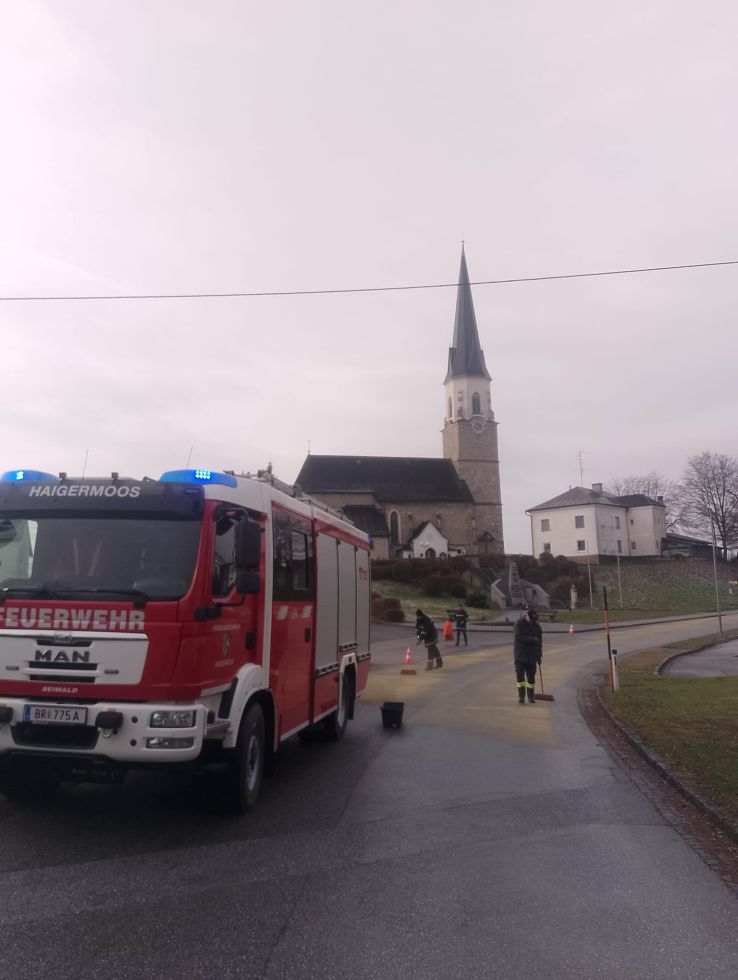 Die Feuerwehr Haigermoos wurde am Vormittag des 24. Novembers aufgrund einer Ölspur entlang der Haigermooser Straße bis zur Ortschaft Aich alarmiert. Die Reinigung der Straße beschäftige 8 Kameraden für ca. 1,5 Stunden.