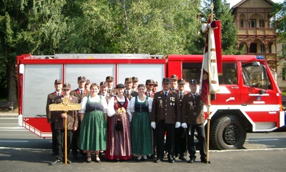 Ausrückung zum 90- jährigen Gründungsfest der FF St. Johann am Walde am 26.7.2003 mit 14 Mann.