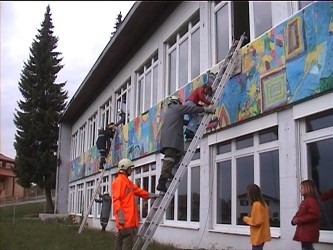 Bei der Frühjahrsübung 2004 wird die Evakuierung der Volksschule Haigermoos angenommen.